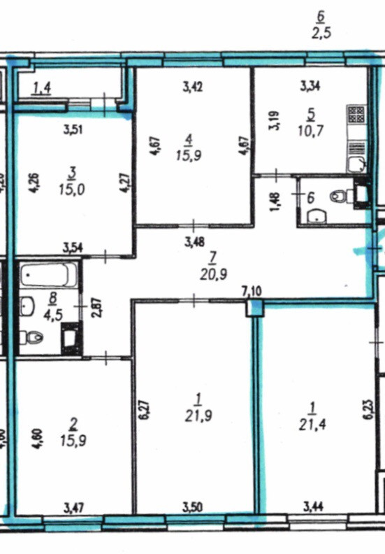 Жилая площадь 68.7 м2