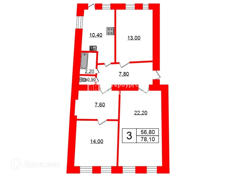 Общая площадь 78.1 м2