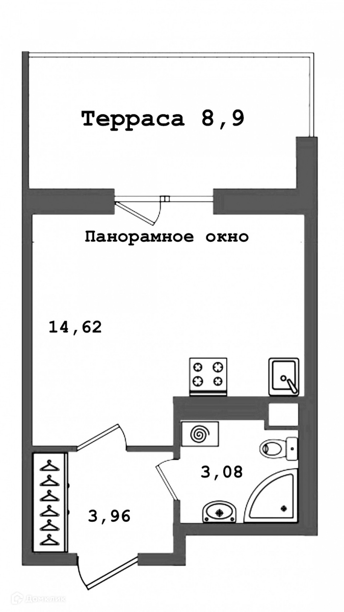 Уютная студия с шикарной террасой, которая никого не оставит равнодушным.
