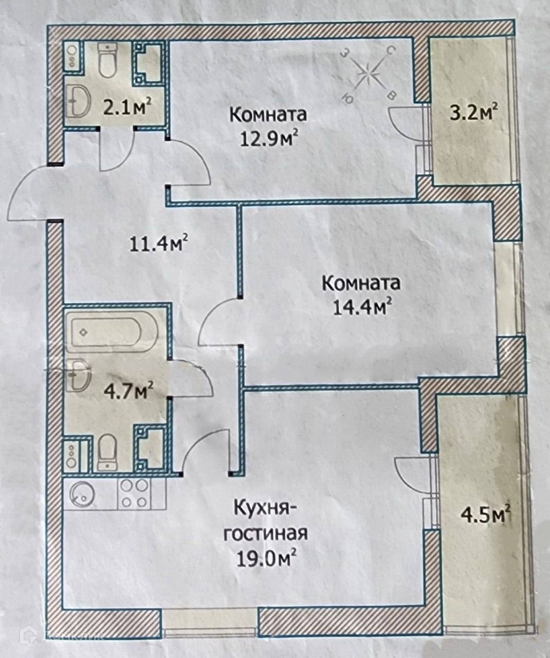 Общая площадь 64.5 м2