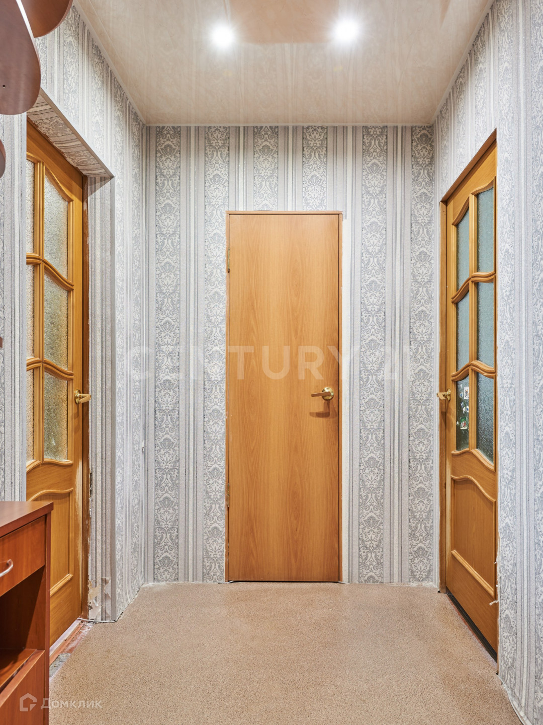 просторный коридор с выделенным местом под гардеробную.