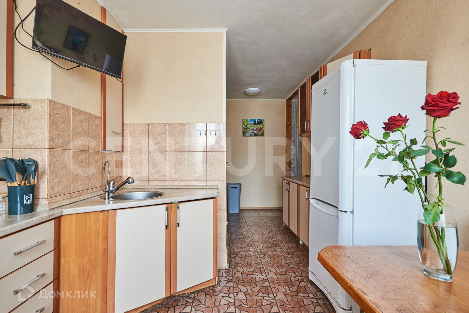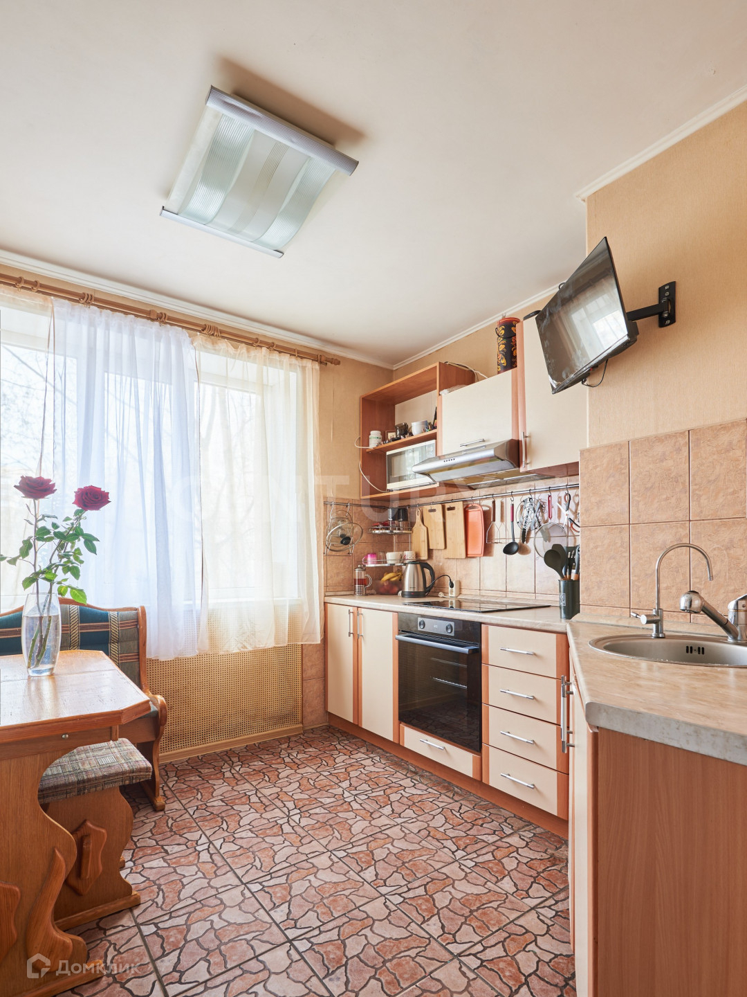 В квартире остается встроенный кухонный гарнитур со встроенной техникой.