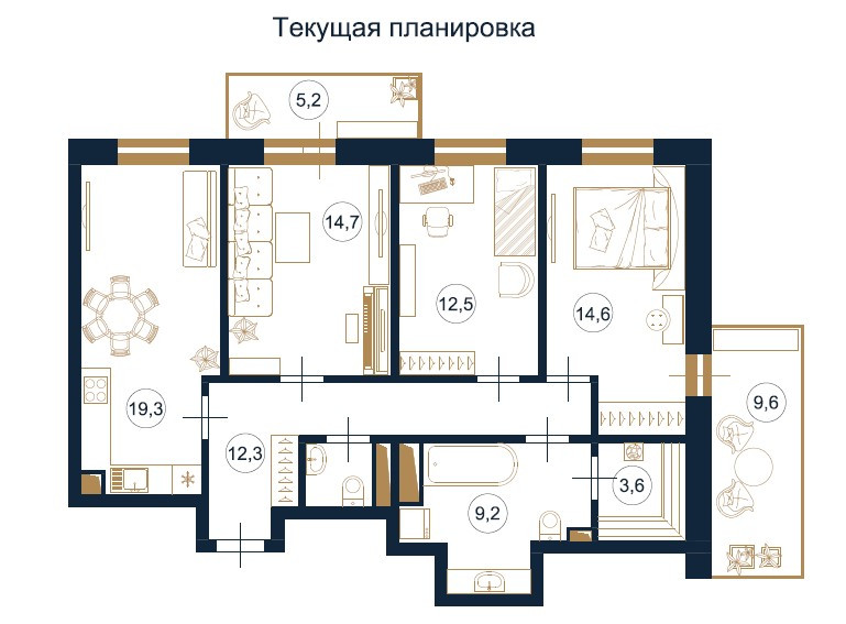 (3 спальни + большая кухня-гостинная)