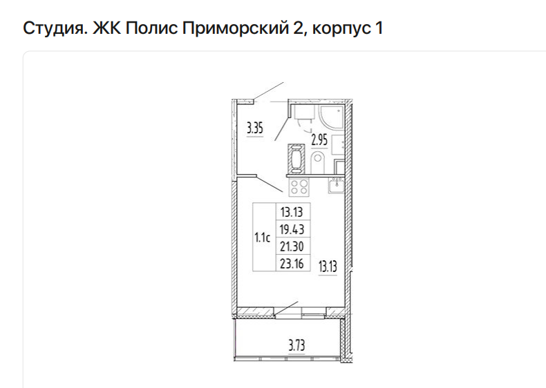 Общая площадь 21.3 м2