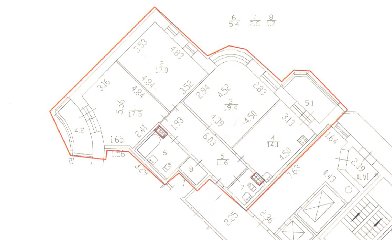 Жилая площадь 53.9 м2