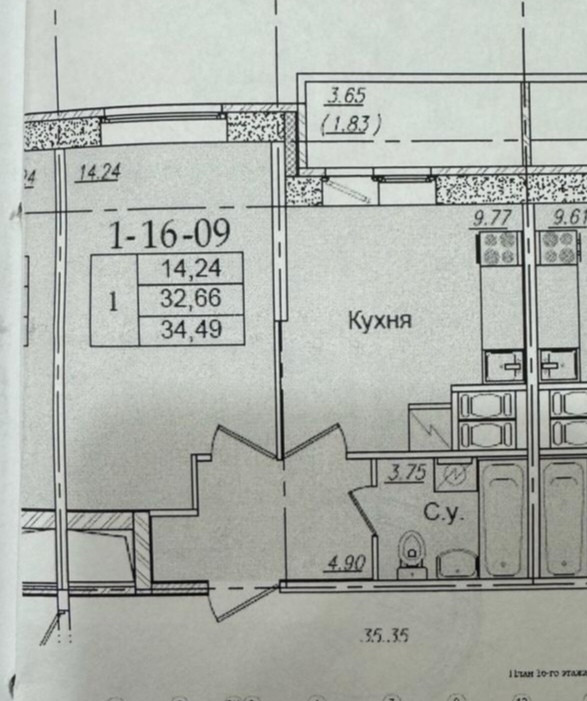 Общая площадь 34.5 м2