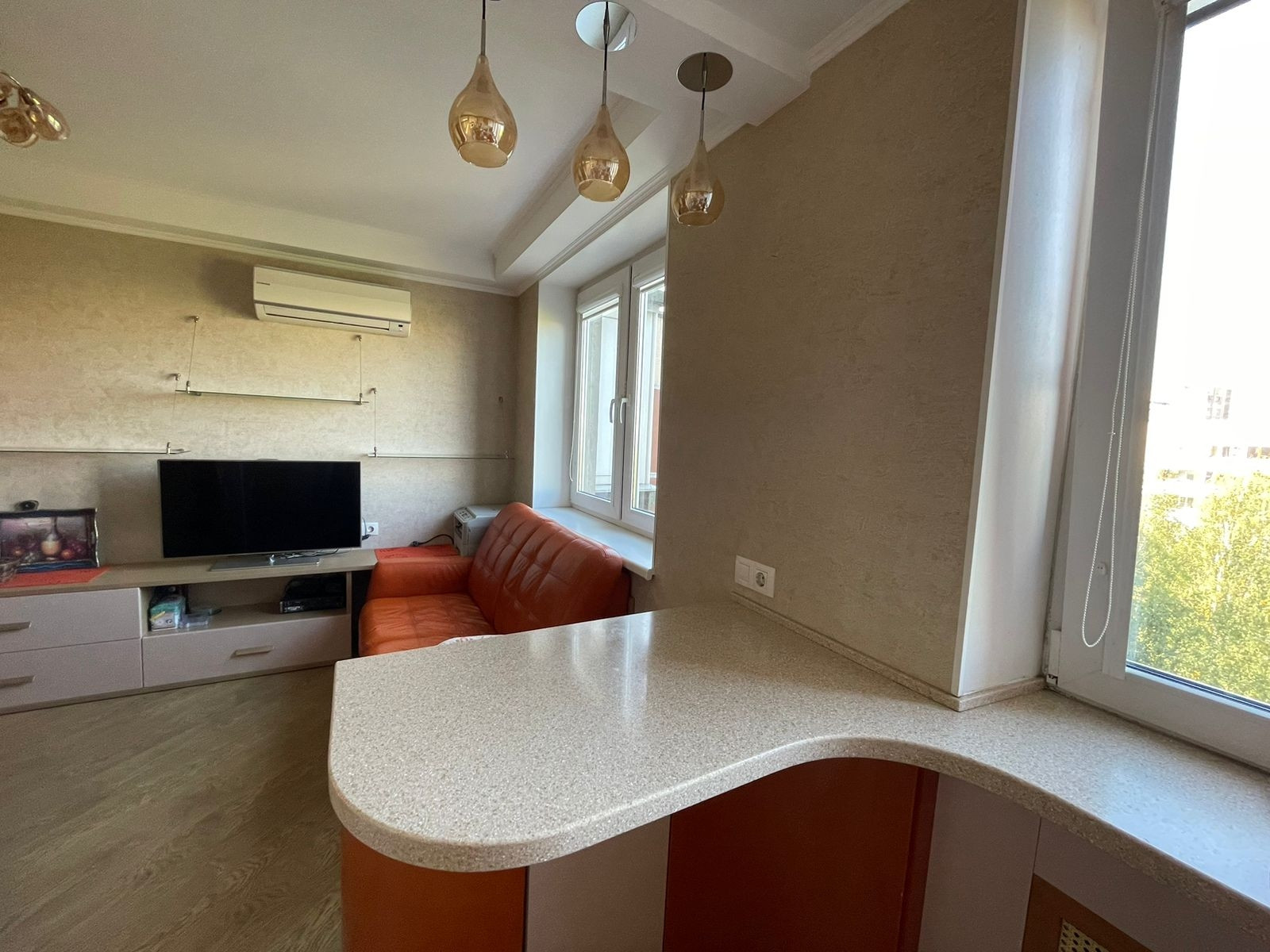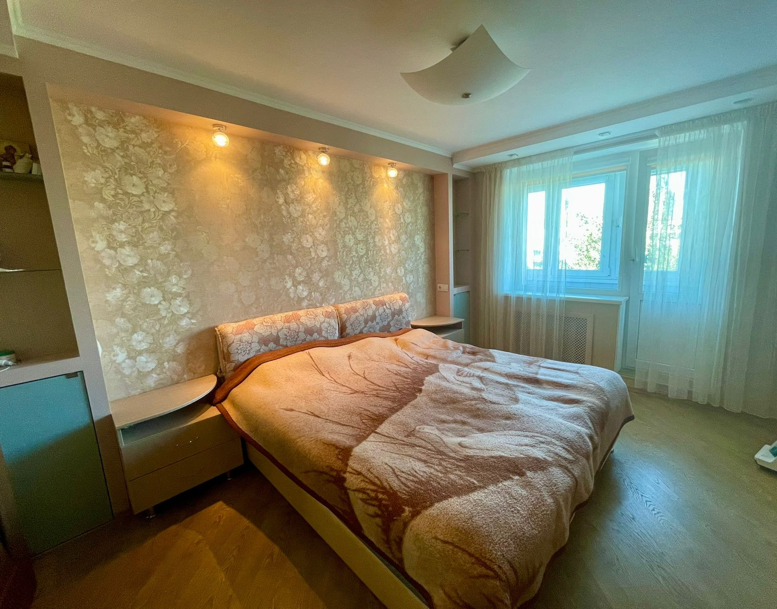 В квартире сделан качественный ремонт : окна стеклопакеты, пол в комнатах: ламинат и частично в коридоре,Также в части коридора ,санузле и кухонной зоне кафельная плитка. Заменена проводка и трубы, подводки.Выровнены стены( делали для себя) . Квартира тёплая. В квартире имеется большой балкон( на две комнаты), Балкон остеклен, полностью благоустроен.В квартире есть большая гардеробная и в коридоре установлены современные встроенные шкафы.Остаётся встроенная кухня, варочная панель, вытяжка . Установлена надёжная входная дверь В квартире выполнена перепланировка без изменений наружных границ, мокрых мест . Приличные соседи.