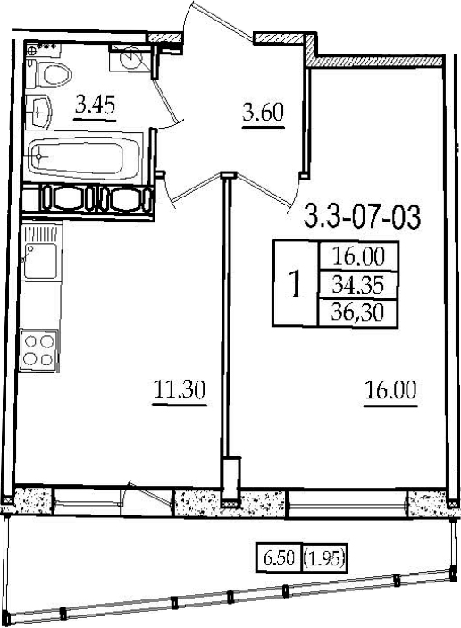 Балкон, лоджия 1 балкон