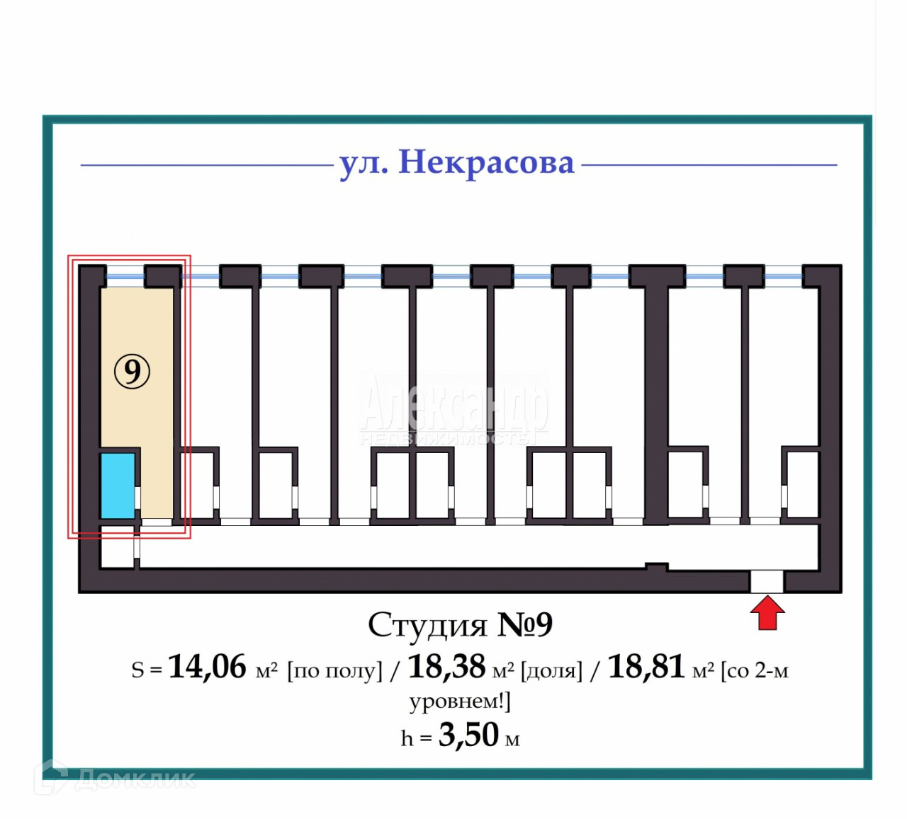 6. Площадь: 14,06 м² [по полу] / 17,96 м² [доля] / 18,81 м² [со 2-м уровнем!]