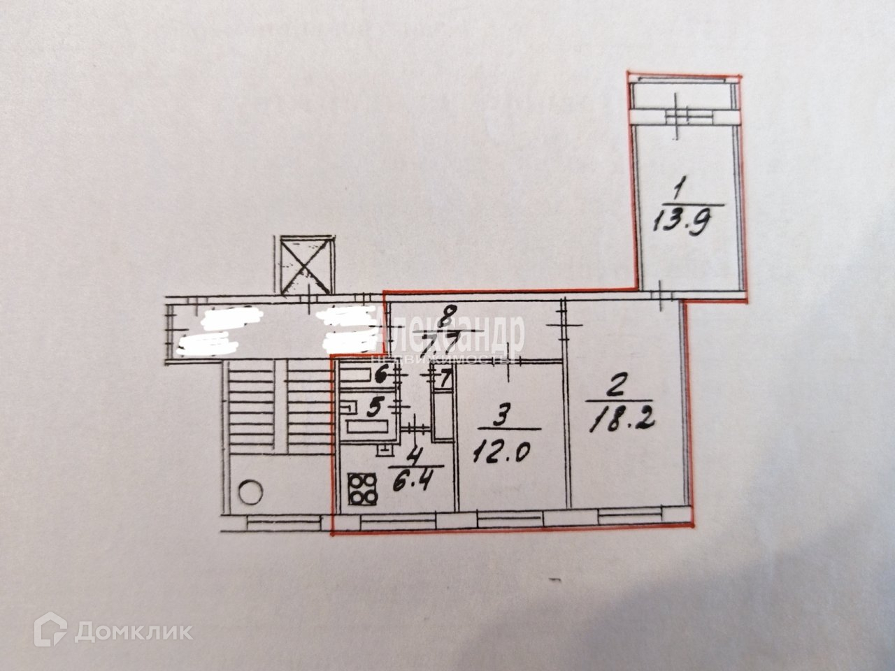 Жилая площадь 44.1 м2