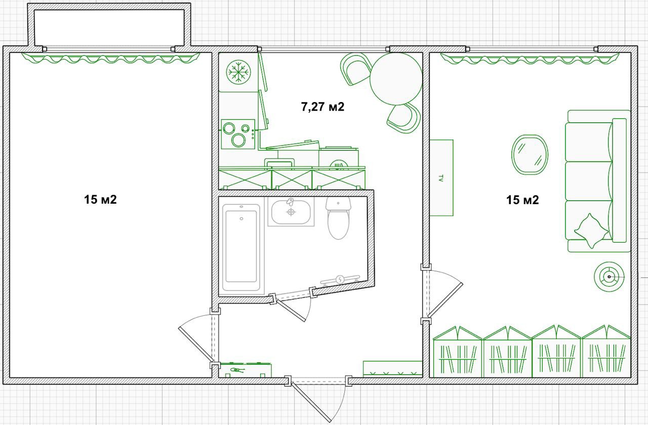 Общая площадь 44.8 м2