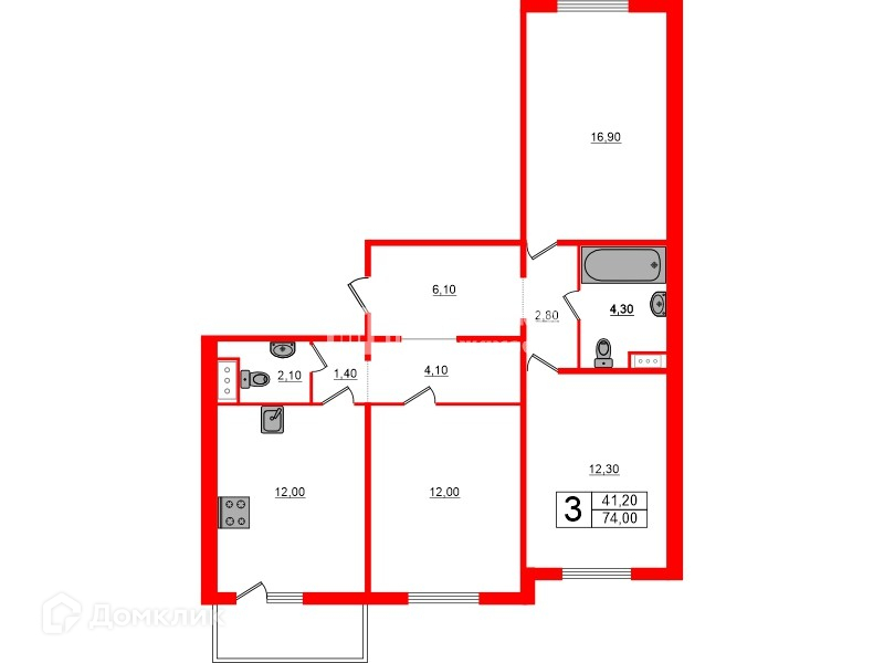 Общая площадь 74 м2