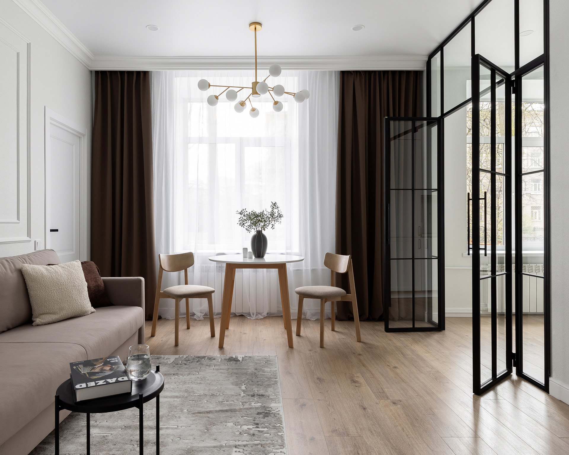 Квартира полностью готова для проживания, выполнен ремонт по дизайн-проекту. Общая площадь - 51,3 м2. Квартира имеет продуманную и эргономичную планировку, где эффективно используется пространство, чтобы создать комфортное и практичное жилье с удобным зонированием: есть зона кухни, спальня и зона отдыха, совмещенный санузел полностью облицован плиткой, места для хранения вещей - гардеробная при входе в квартиру и просторная гардеробная в спальне. Установлена техника: холодильник, посудомоечная машина, варочная поверхность, вытяжка, духовой шкаф. Окна выходят в просторный зеленый вдор.