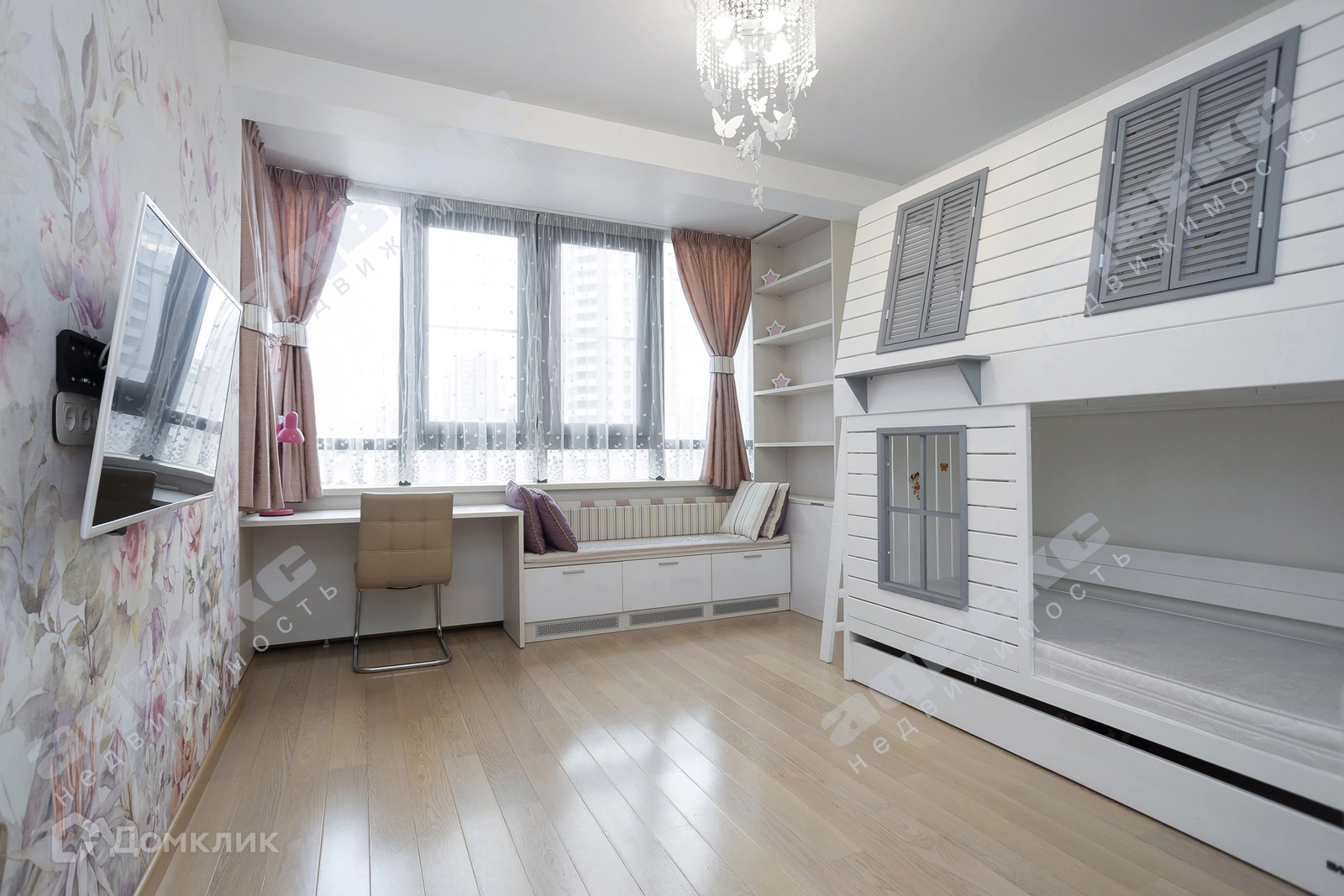Жилое пространство организованно из визуально зонированой кухни- гостиной, мастер- спальни и двух детских, 33,7/ 19,1/ 16,6/ 12,0 м. кв. соответственно. Мебель изготовленная по индивидуальному проекту, под заказ, из высококаяественных экологически чистых материалов, достойно сочетается с премиальной техникой Sony и Liebherr. Изюминкой мастер- спальни без сомнения является панорамное окно, занимающее всё пространство стены.