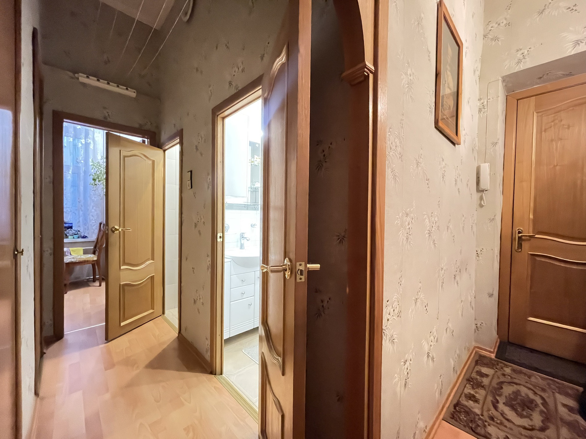В коридоре имеются две большие кладовые - можно переоборудовать под гардеробные.