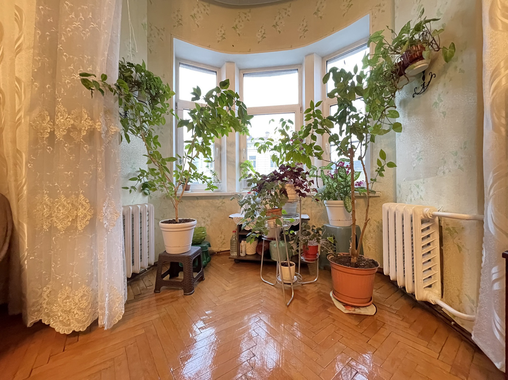 В большой комнате шикарный эркер с видом на садовую улицу.