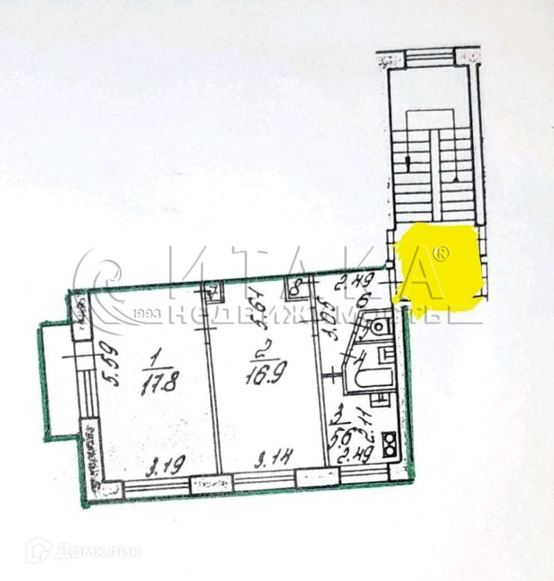 2-комнатная квартира, 48.9 м2, этаж 2 / 5, на продажу в Санкт-Петербурге, улица Добровольцев, 26