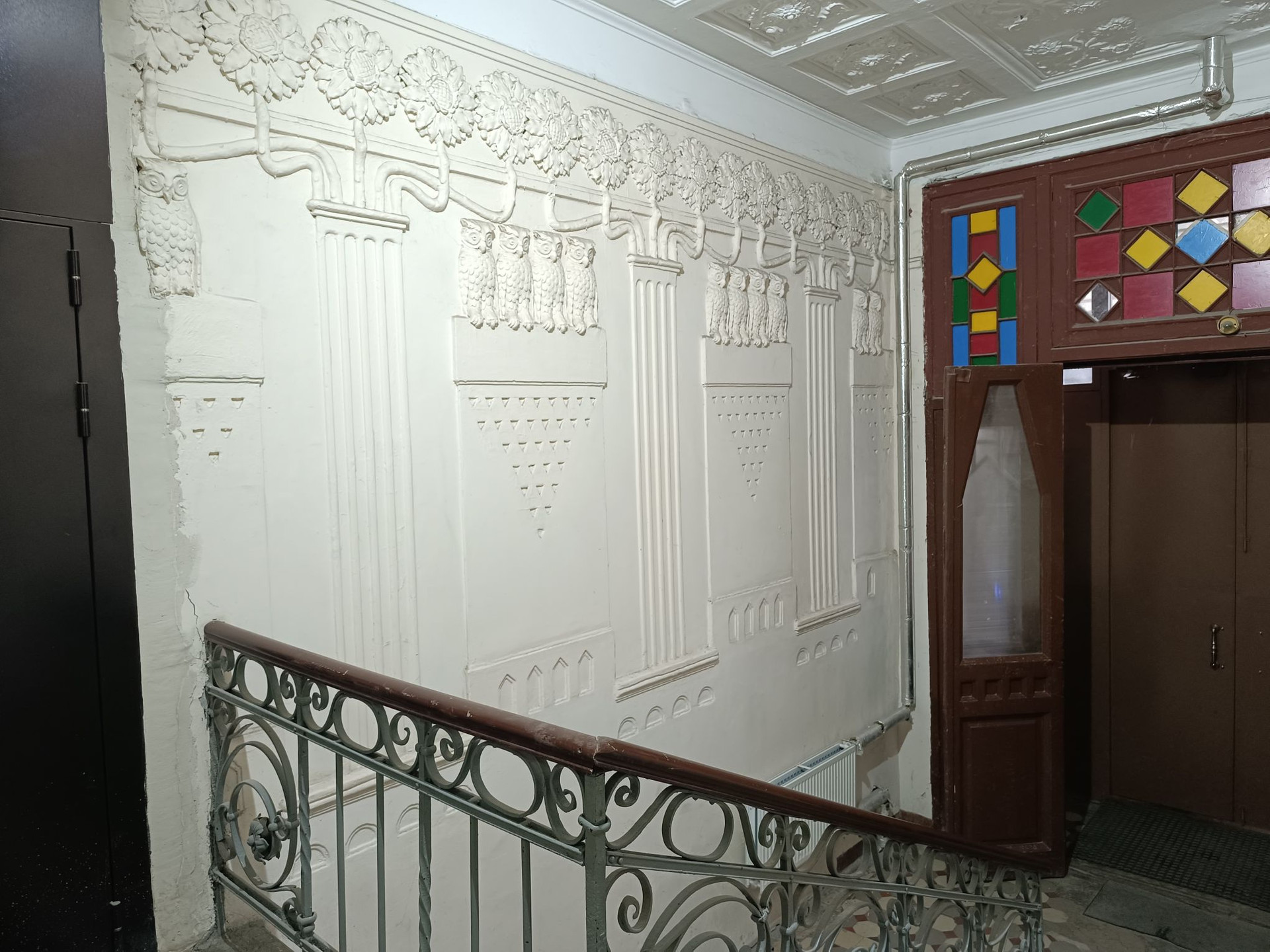 В самом доме сделан кап.ремонт, отреставрирован фасад, широкие и аккуратные лестничные пролёты, на лестнице окна - большие стеклопакеты.