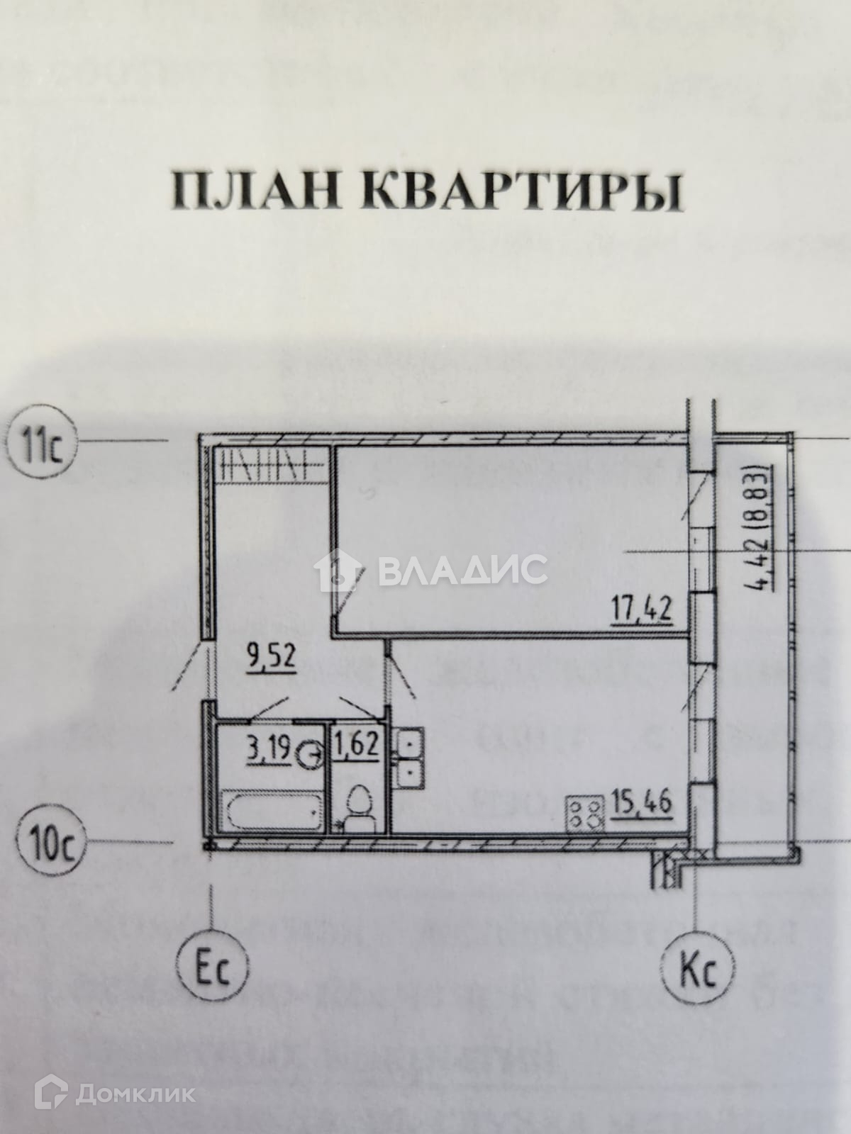 Жилая площадь 17,4кв.м.