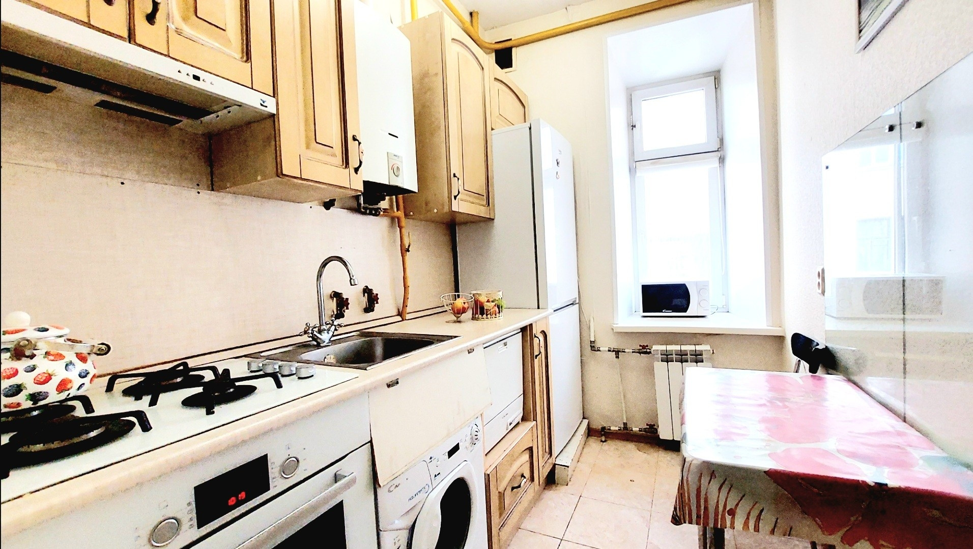 Квартира светлая, солнце с утра до обеда. Все окна в тихий двор, на 2 стороны