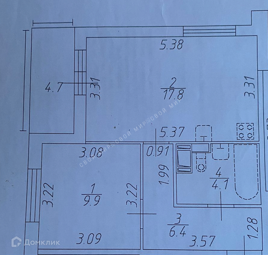 Общая площадь 38.2 м2