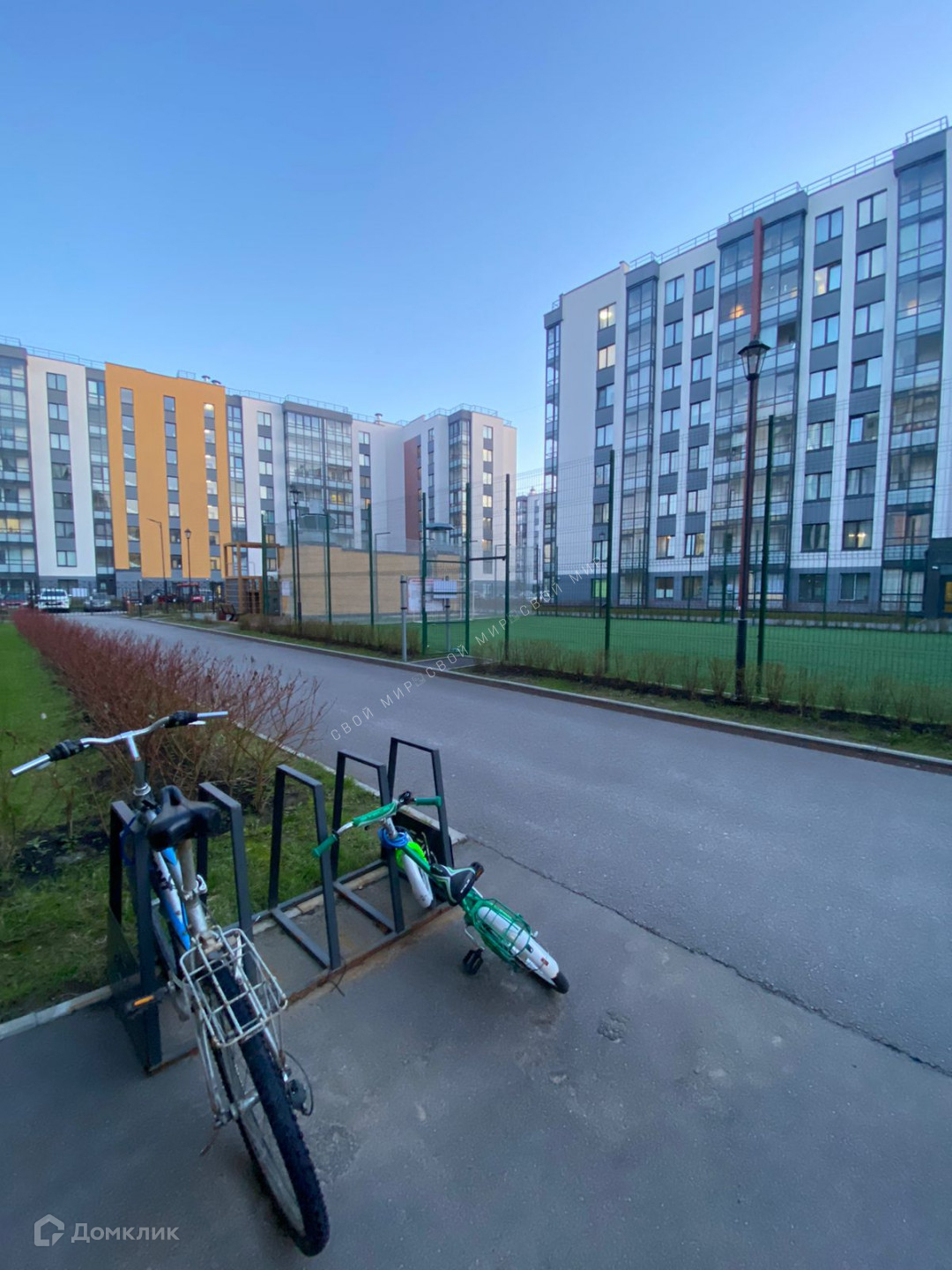 Ремонт от застройщика в светлых тонах. Очень светлая и уютная квартира. Окна выходят в тихий двор. На первом этаже есть колясочная. В доме есть подземный паркинг и закрытый двор.