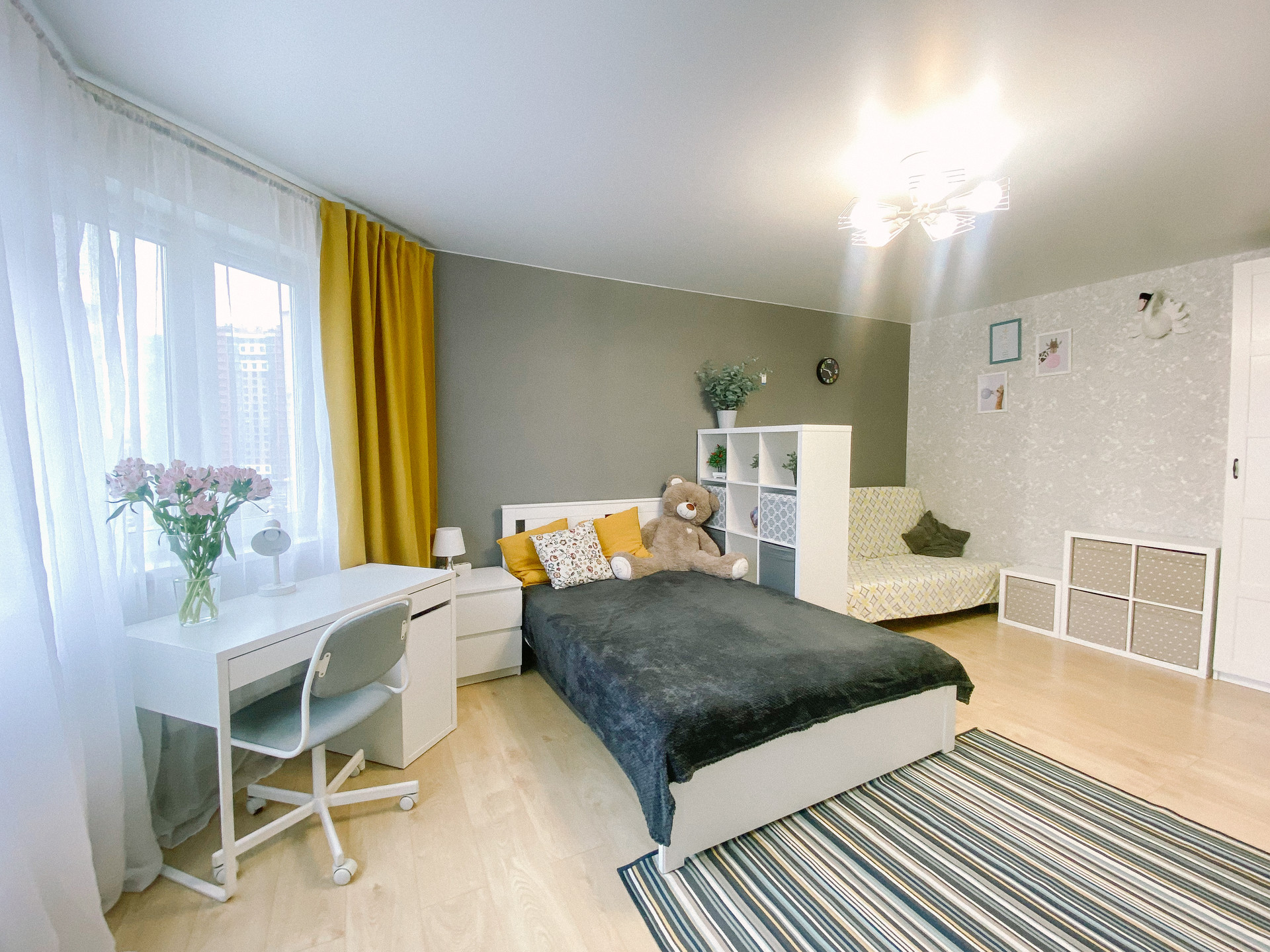 Описание квартиры: Окна выходят во двор. В квартире очень хорошее естественное освещение. Две просторные, изолированные зоны: спальня и эргономичная кухня.