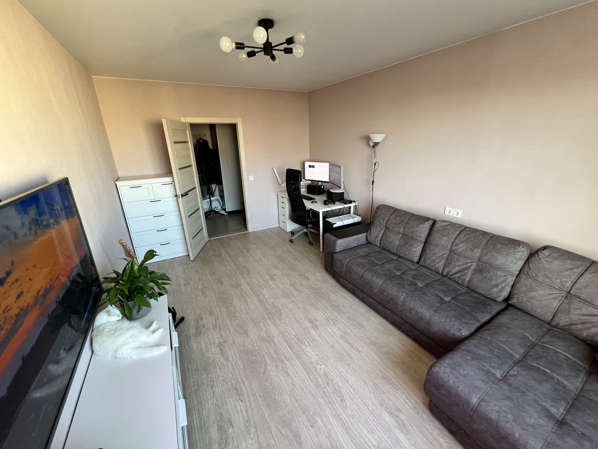 Просторный коридор, изолированные комнаты. В спальне оборудован большой встроенный шкаф.