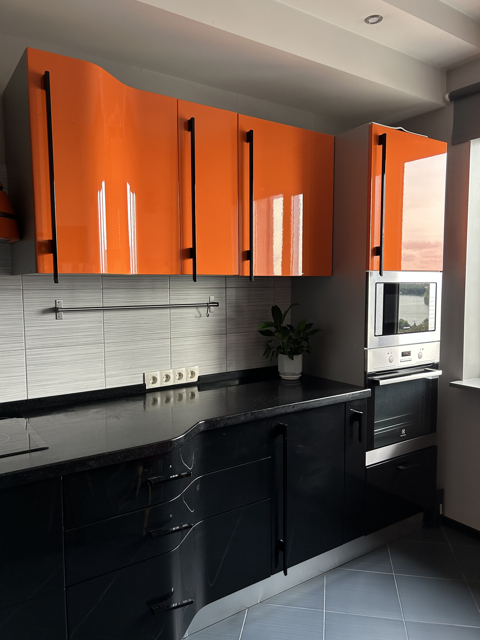 Большая шикарная кухня 16м выполнена в строгих и в тоже время ярких тонах подчеркивая вашу уникальность! Квартира создавалась с теплом и уютом, поэтому вся встраиваемая техника только премиальных брендов!