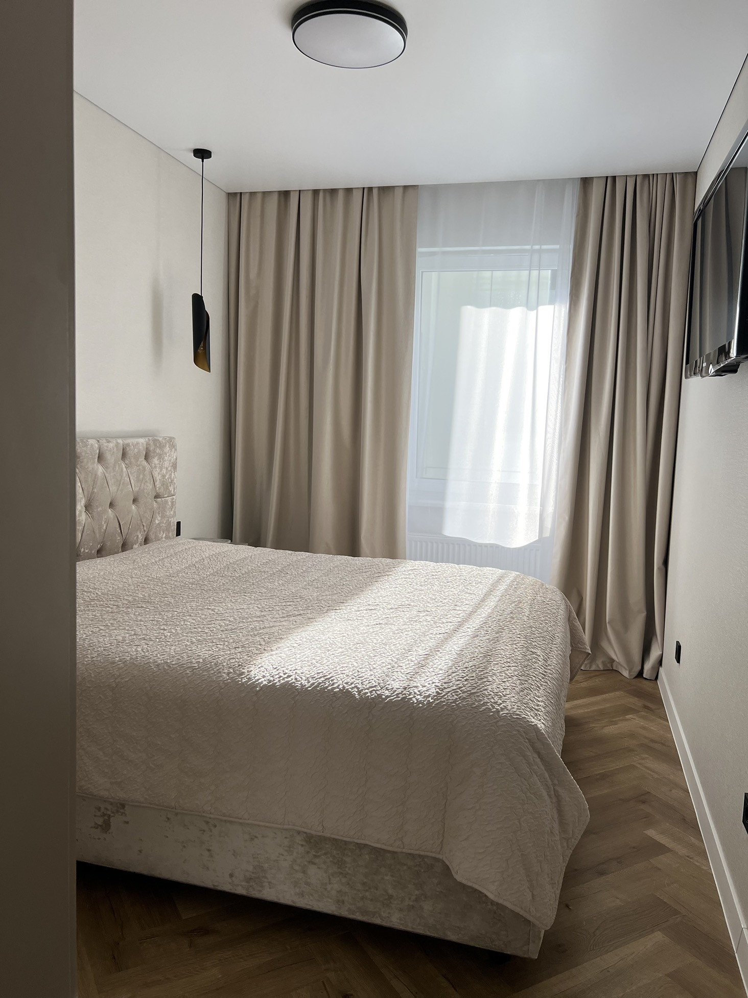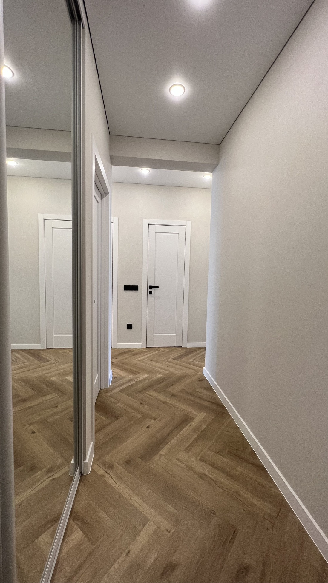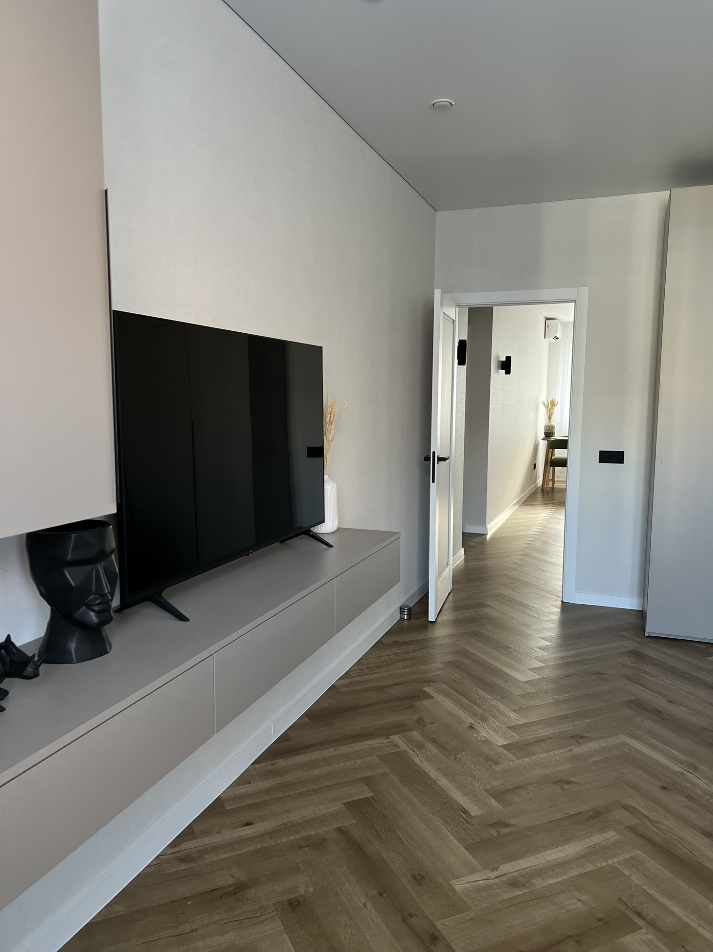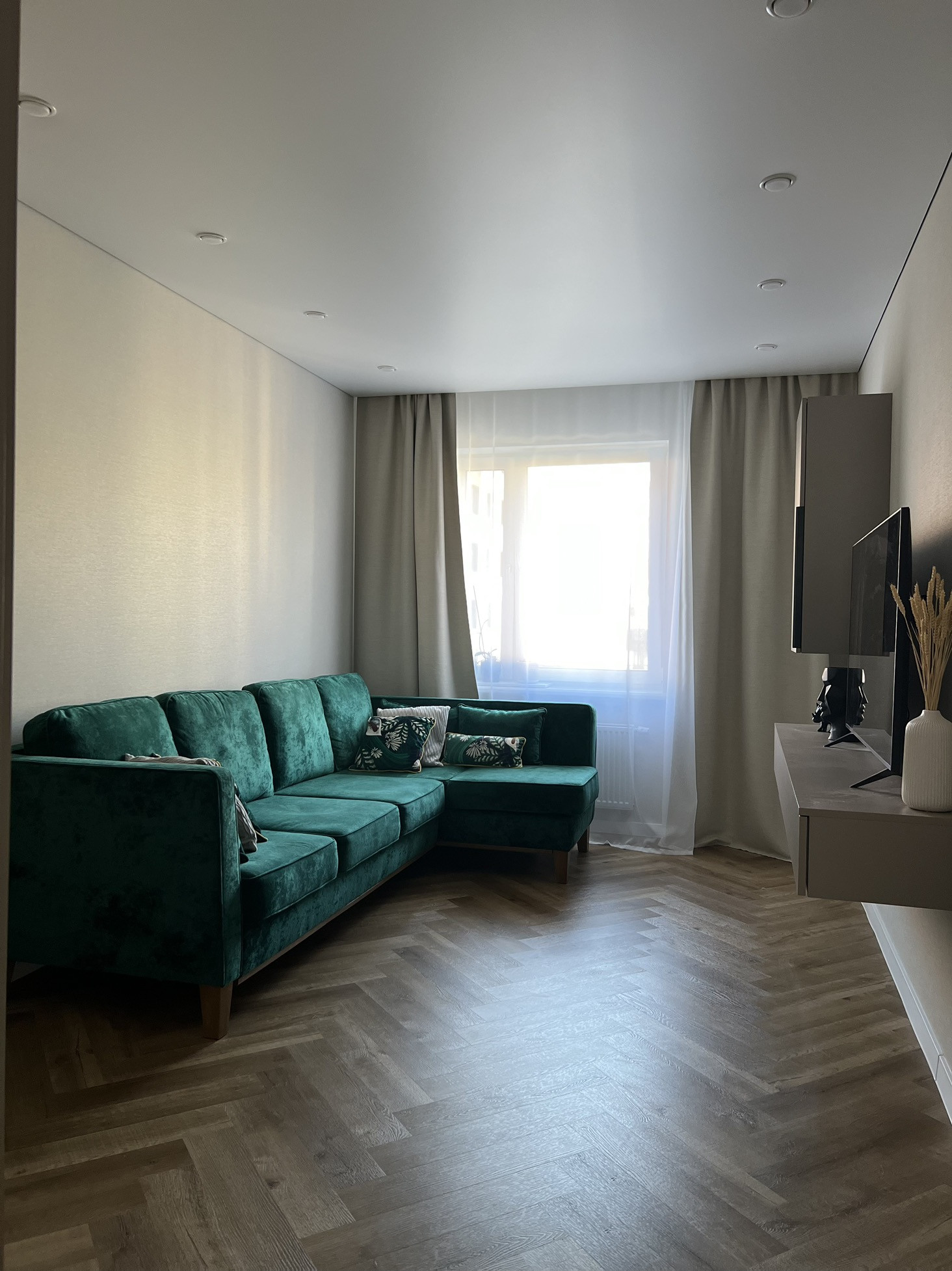 В квартире выполнен современный ремонт с использованием качественных материалов, индивидуальная разводка сантехники и электрики (большое количество розеток, в том числе на подоконниках, выключателей и переключателей), система фильтрации воды, сделано нижнее подключение радиаторов отопления из стены, для удобства в квартире установлен бойлер и кондиционер (electrolux), в ванной комнате сделан электрический тёплый пол (electrolux), в прихожей - видеодомофон. Инсталляция (geberit) с подвесным унитазом, смесители am pm. Пол во всей квартире - кварцвинил (без порогов в один уровень), в санузле и на балконе - керамогранит. Натяжные потолки с теневым профилем и закарнизными нишами в комнатах и на кухне.
