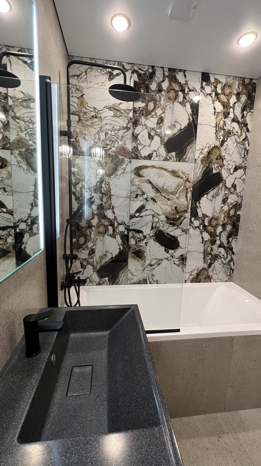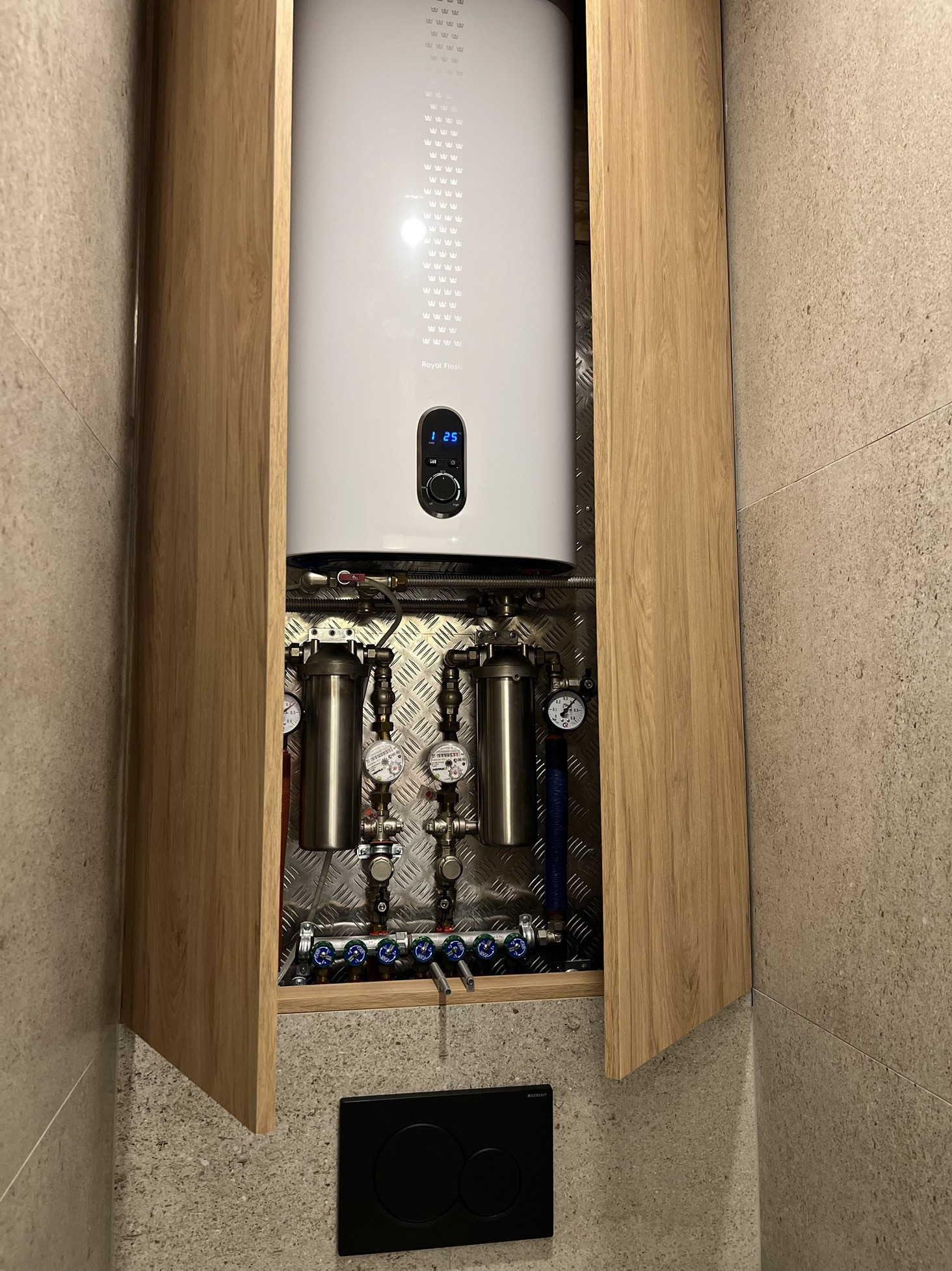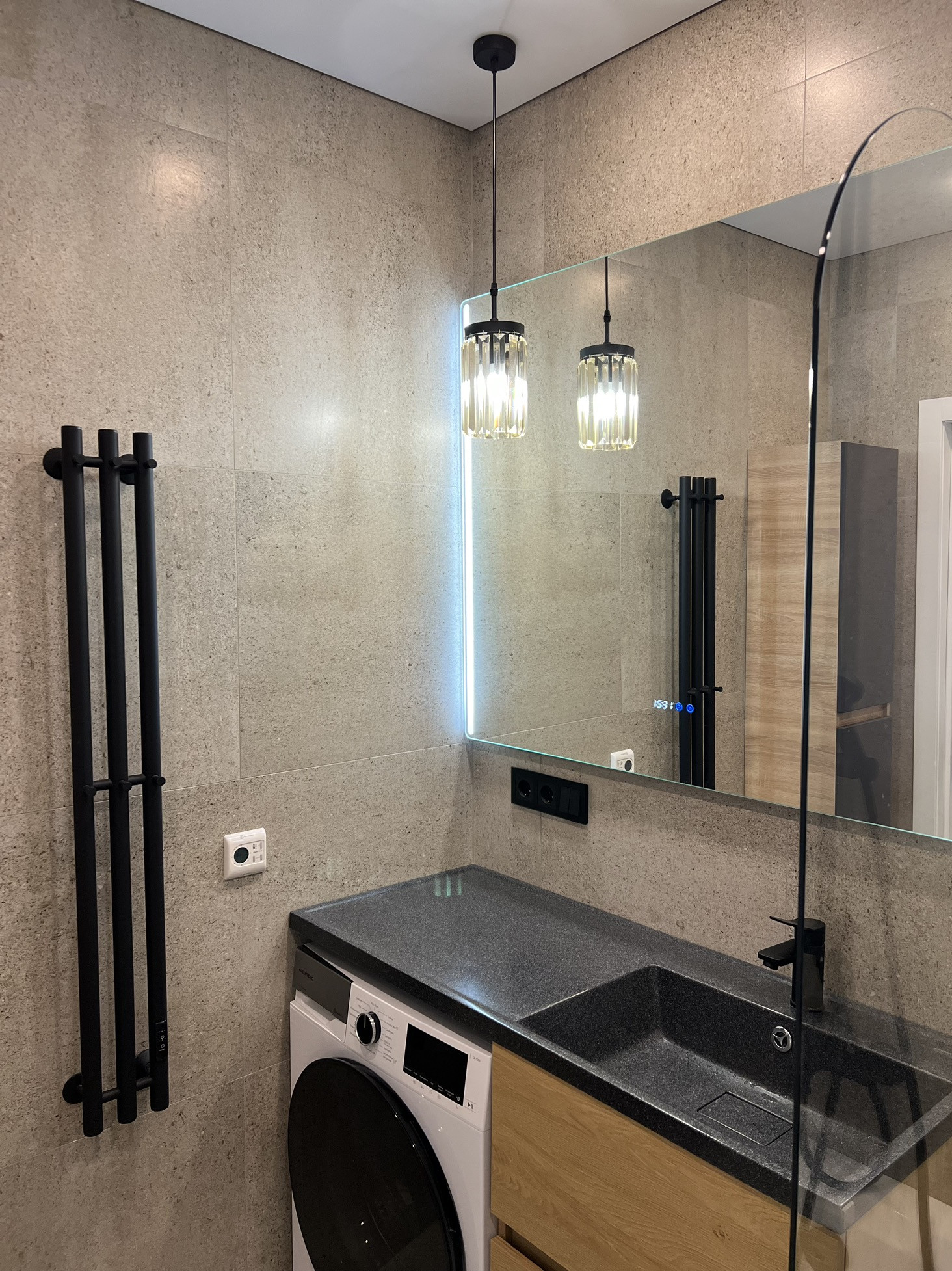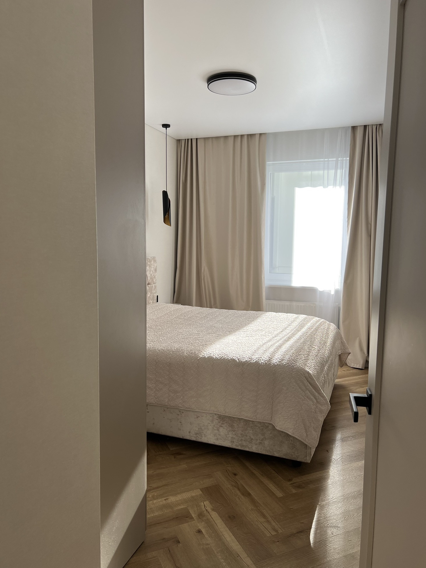 В квартире выполнен современный ремонт с использованием качественных материалов, индивидуальная разводка сантехники и электрики (большое количество розеток, в том числе на подоконниках, выключателей и переключателей), система фильтрации воды, сделано нижнее подключение радиаторов отопления из стены, для удобства в квартире установлен бойлер и кондиционер (electrolux), в ванной комнате сделан электрический тёплый пол (electrolux), в прихожей - видеодомофон. Инсталляция (geberit) с подвесным унитазом, смесители am pm. Пол во всей квартире - кварцвинил (без порогов в один уровень), в санузле и на балконе - керамогранит. Натяжные потолки с теневым профилем и закарнизными нишами в комнатах и на кухне.