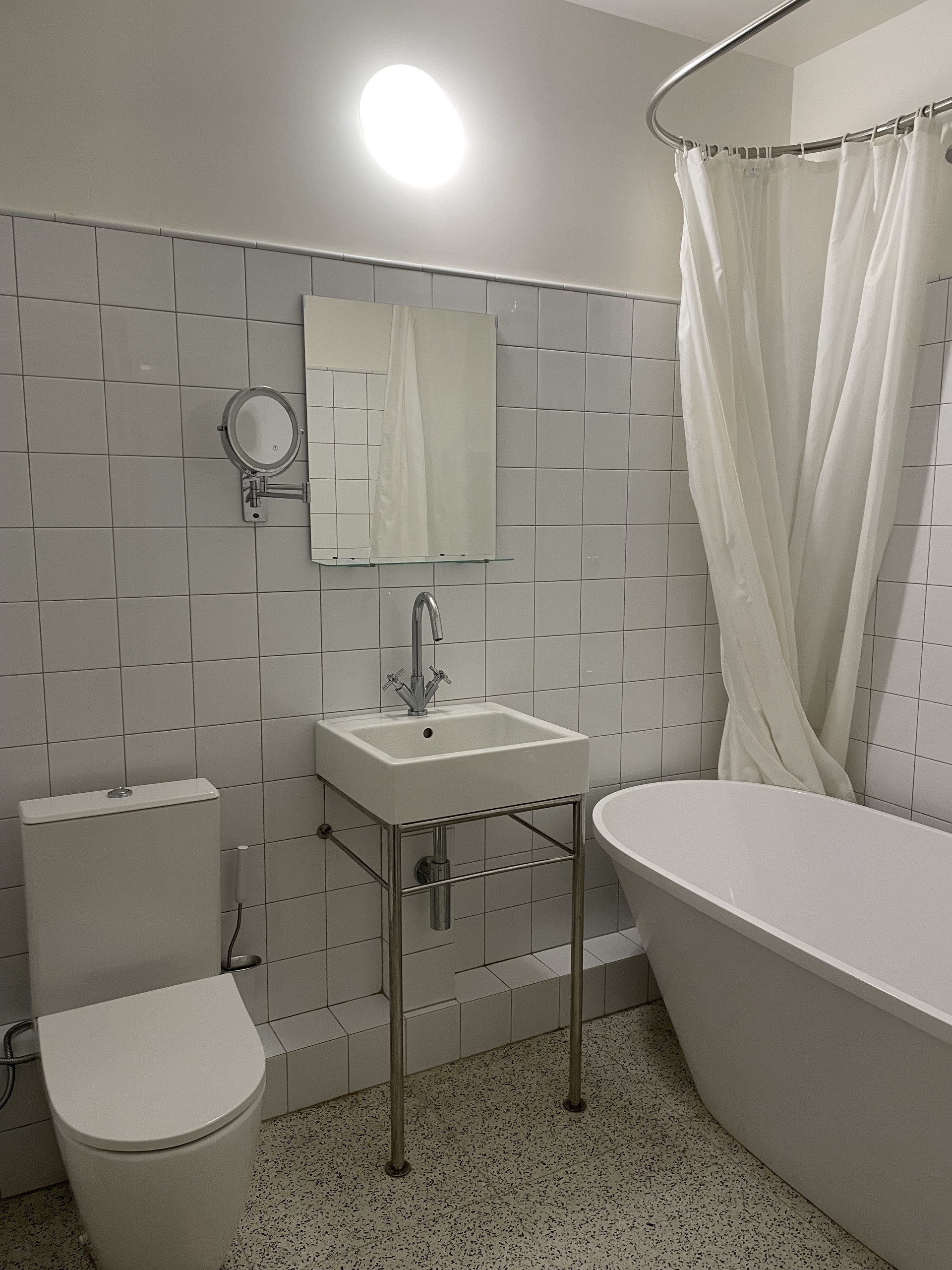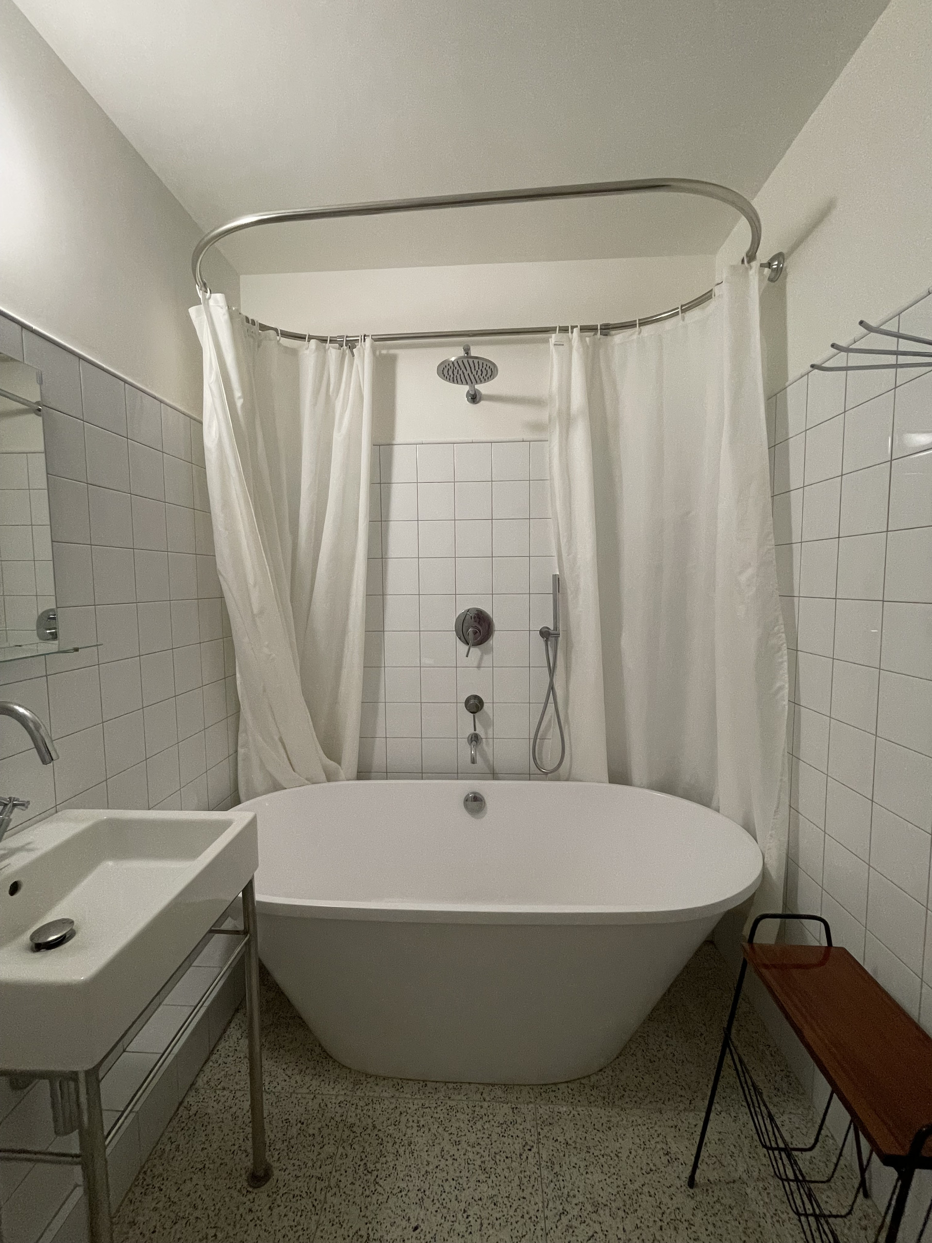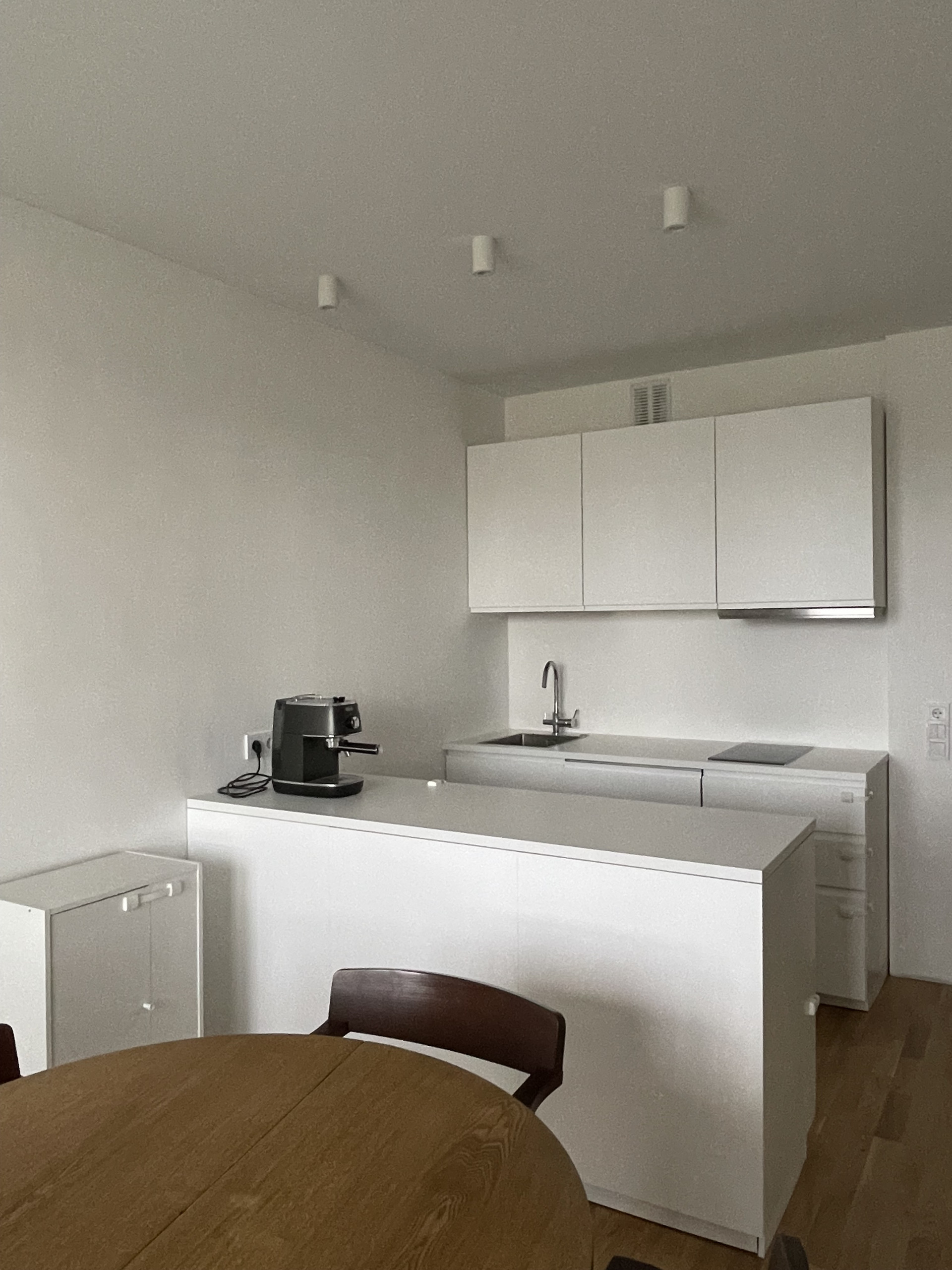 Понимаю, что конфигурация кухни довольно специфическая, ее мы заберем, как и всю корпусную мебель, за исключением шкафов в ванной. Можем договориться о том, чтобы оставить холодильник и полноразмерную стиральную машинку с функцией сушки.