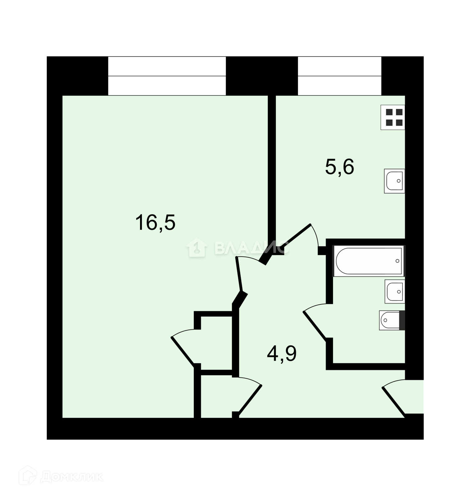 Жилая площадь 16.5 м2