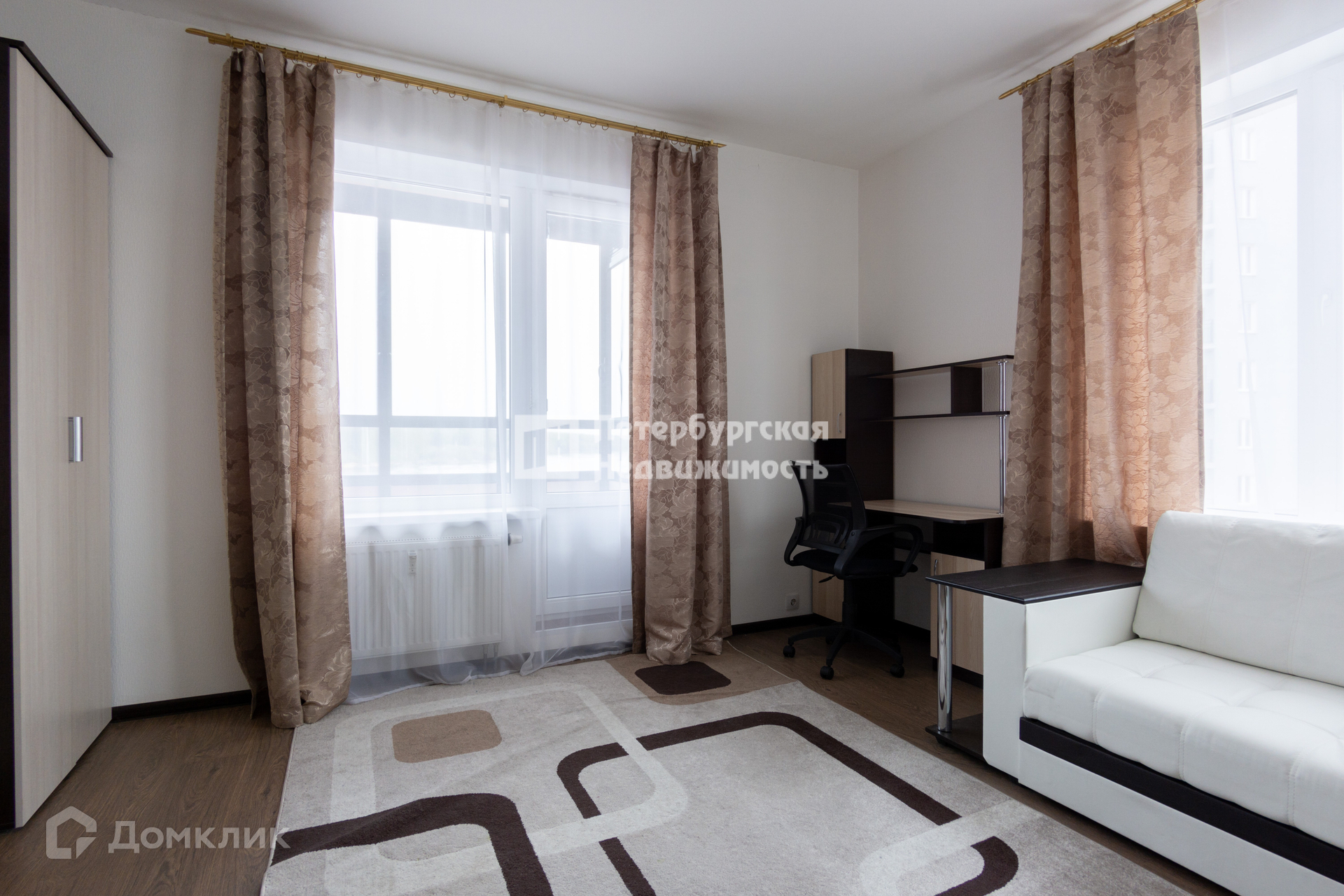 Светлая уютная квартира с двумя окнами в спальне-гостинной и прекрасным видом на Неву в ЖК "Невские паруса"