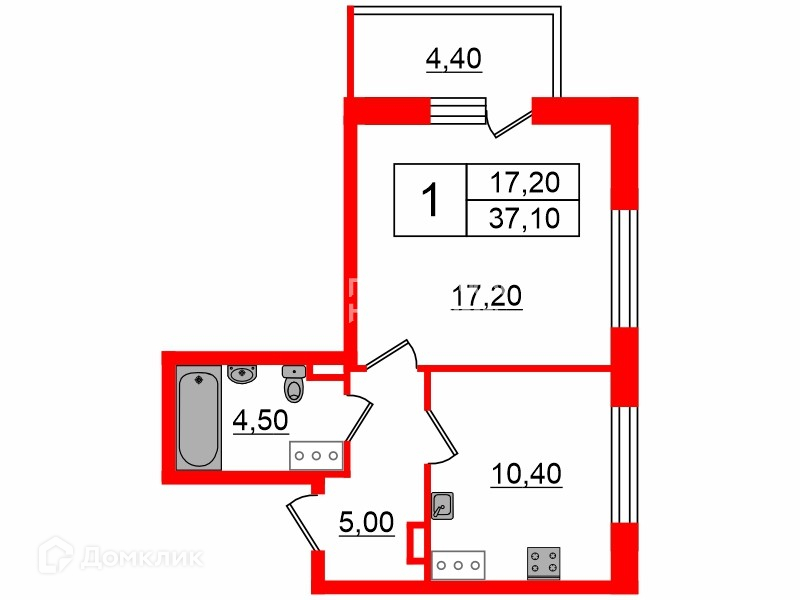 Общая площадь 37.1 м2