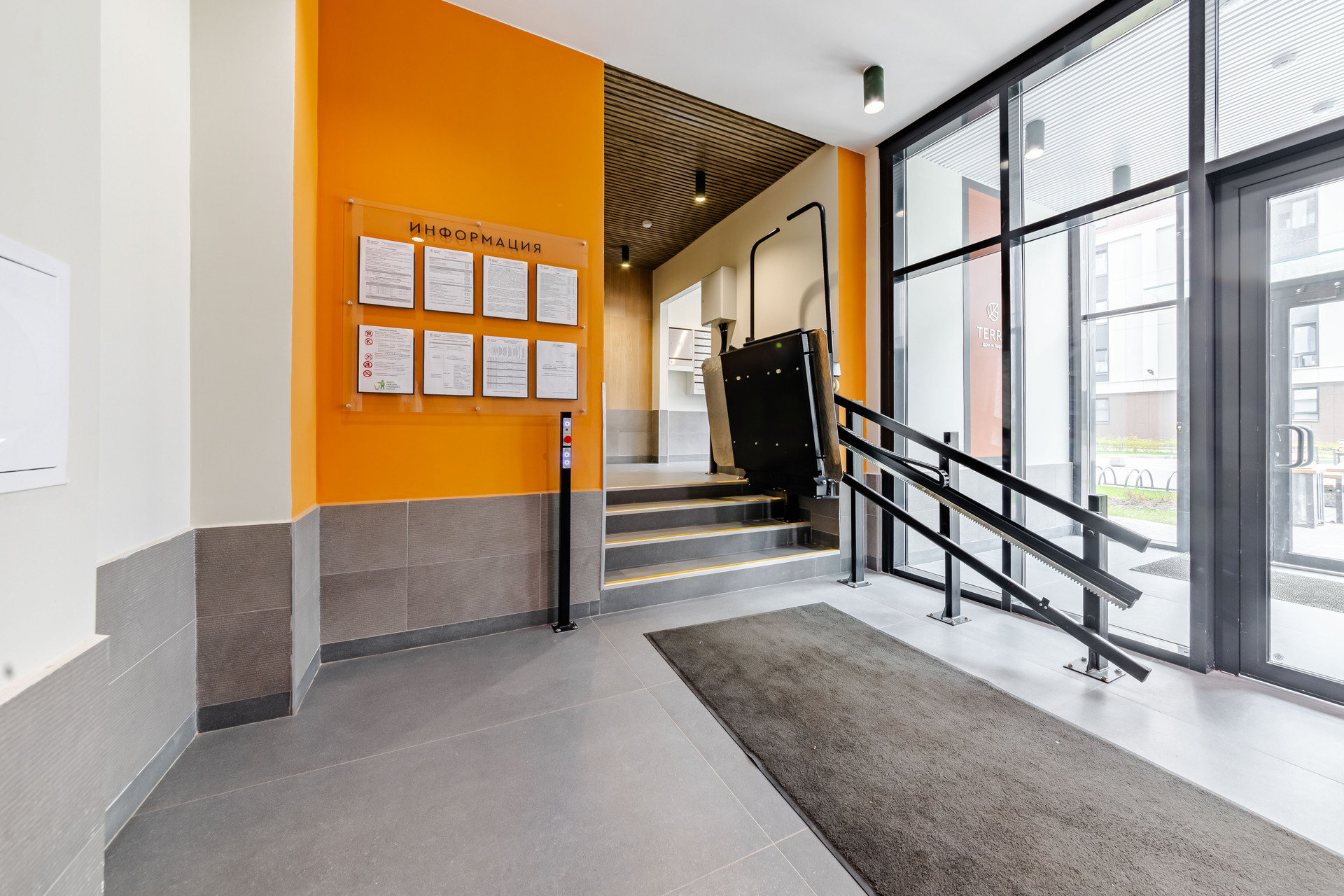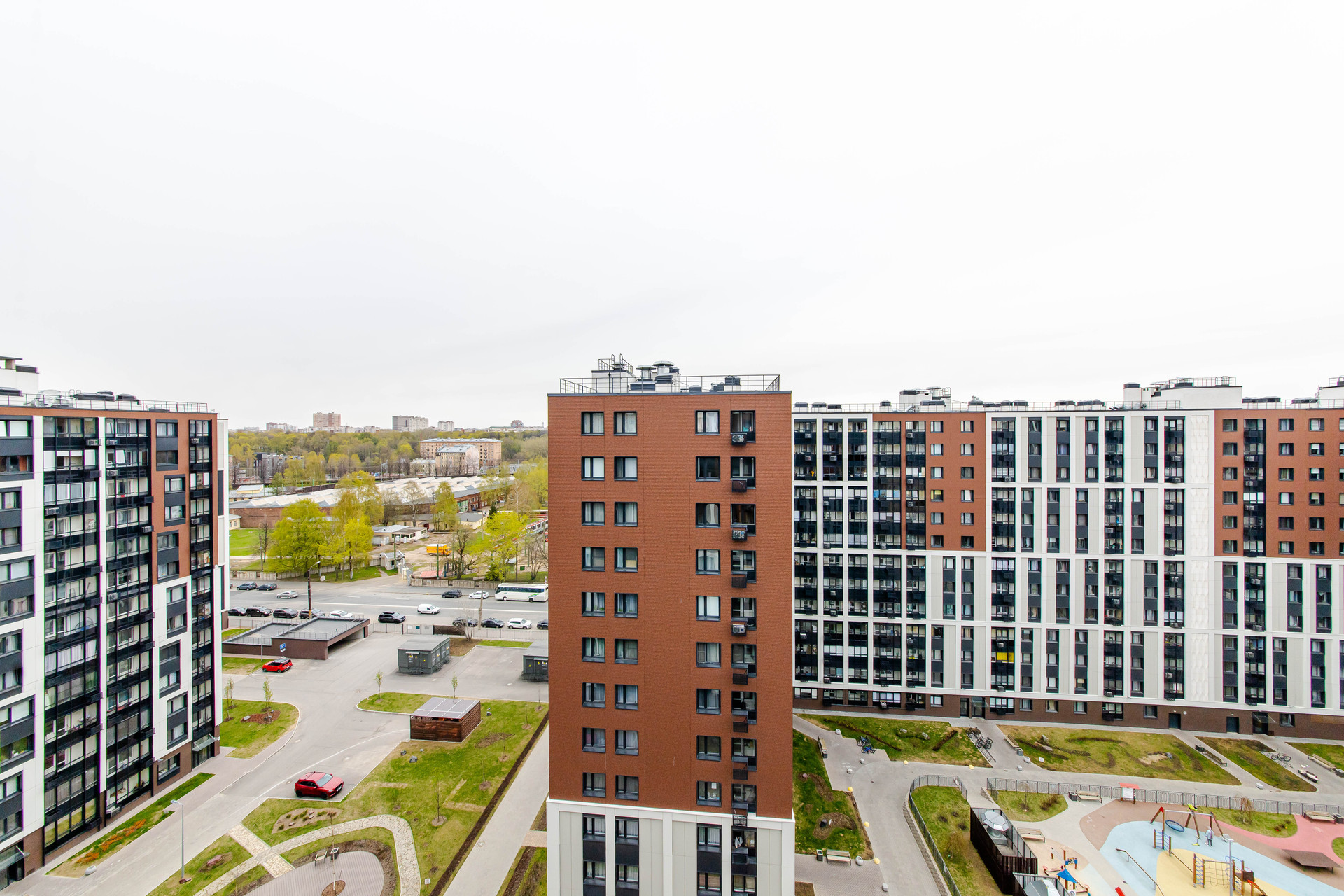 Внутреннее пространство ЖК абсолютно приватное: дворы свободные от автомобилей, благоустроенные места для отдыха взрослых и семей с детьми, а также несколько спортивных и детских площадок. Для автолюбителей оборудован подземный паркинг, спуститься в который можно на лифте из парадной. По периметру дома видеонаблюдение, большие и светлые парадные, где есть места для хранения велосипедов и колясок, входы на уровне земли, без ступеней и пандусов.