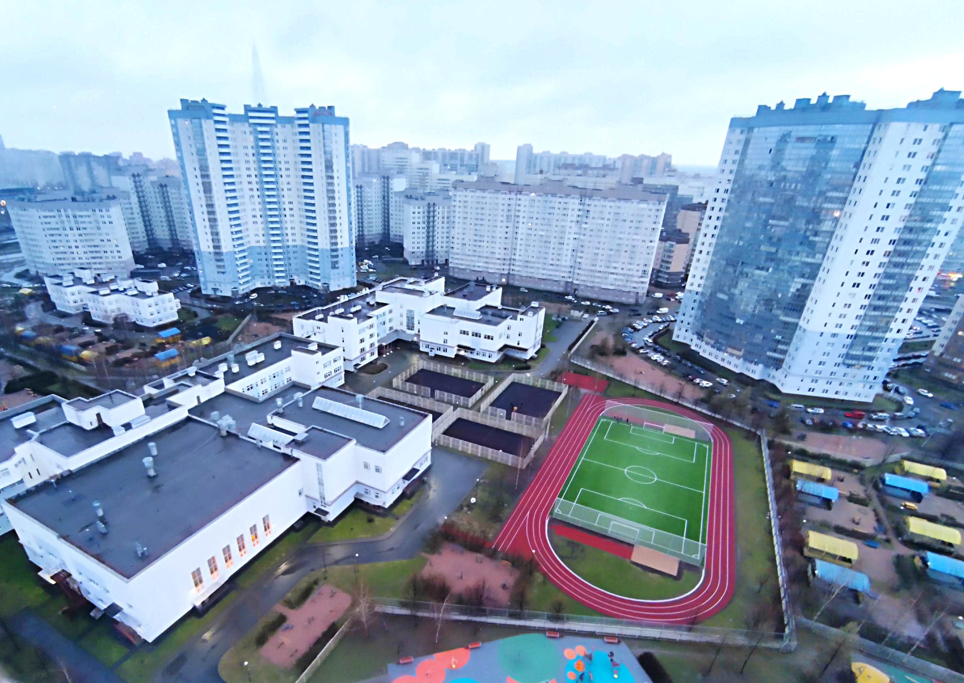 В пешей доступности от 2 до 15 минут современные школы, детские сады. Дом прикреплен к новой школе 630, конечно доступны и другие. Ледовый зал, "Олимпийские Надежды", Молодежный клуб Приморского района, фитнес. Стадион Зенит-Арена в 40 минутах ходьбы, через красивый парк 300-летия Санкт-Петербурга и по пешеходному Яхтенному мосту, с великолепным видом на залив.