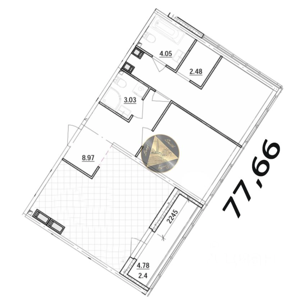 - Общая площадь квартиры 77,66 м2.