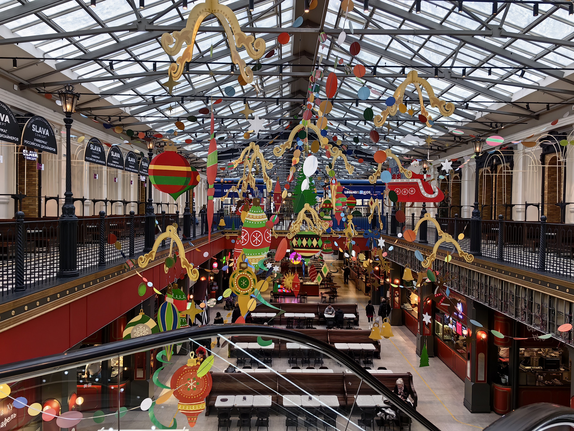 Помимо магазинов самых разных марок на трех этажах комплекса расположились кинотеатр, боулинг, фитнес-клуб с бассейном, развлечения для детей, и самое интересное и необычное — каток и площадка для кёрлинга. Здесь можно пообедать и посетить концертную площадку «Зал ожидания».