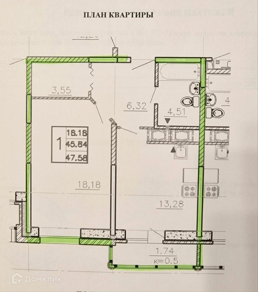 Общая площадь - 45,84 кв м, просторная кухня - 13 кв м, гардеробная. Комфортный средний этаж. Квартира полностью готова к проживанию, чистая, светлая.