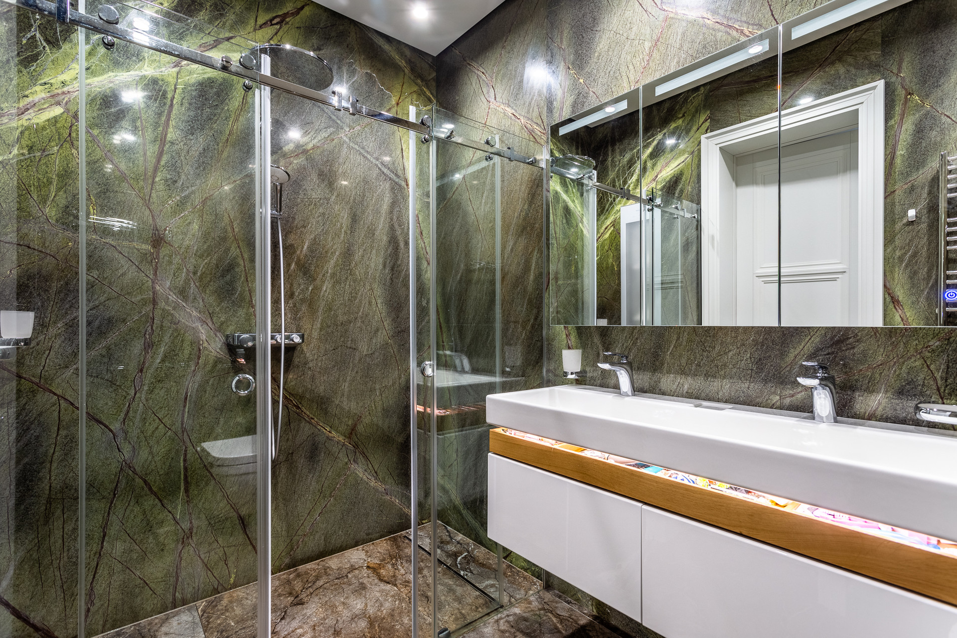 В квартире выполнен дизайнерский ремонт, кухня оборудована техникой Neff. Установлена система умный дом от Яндекса. Во всей квартире теплый пол, установлены электрические шторы.