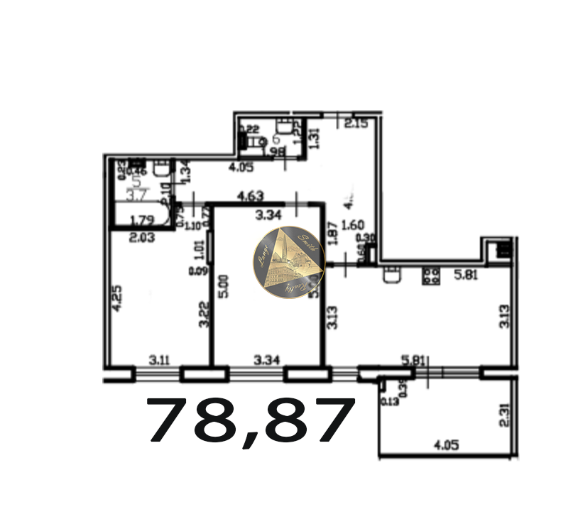 - Общая площадь квартиры 78,87 м2.
