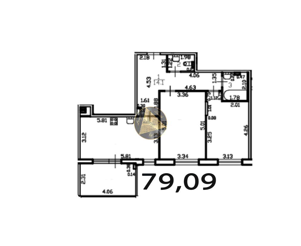 - Общая площадь квартиры 79,09 м2.