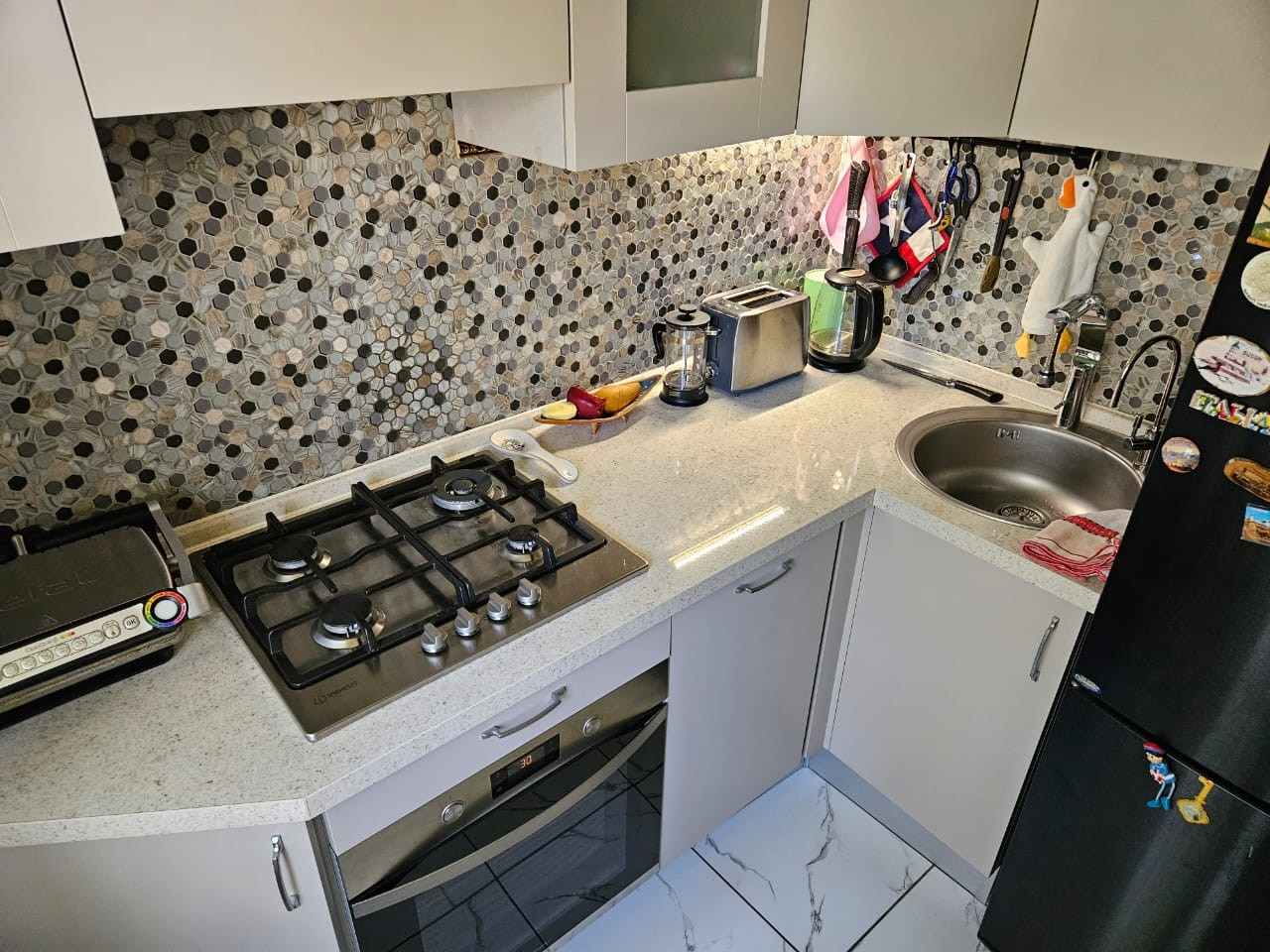 Покупателю остаётся кухонный модуль и техника (кроме холодильника).
