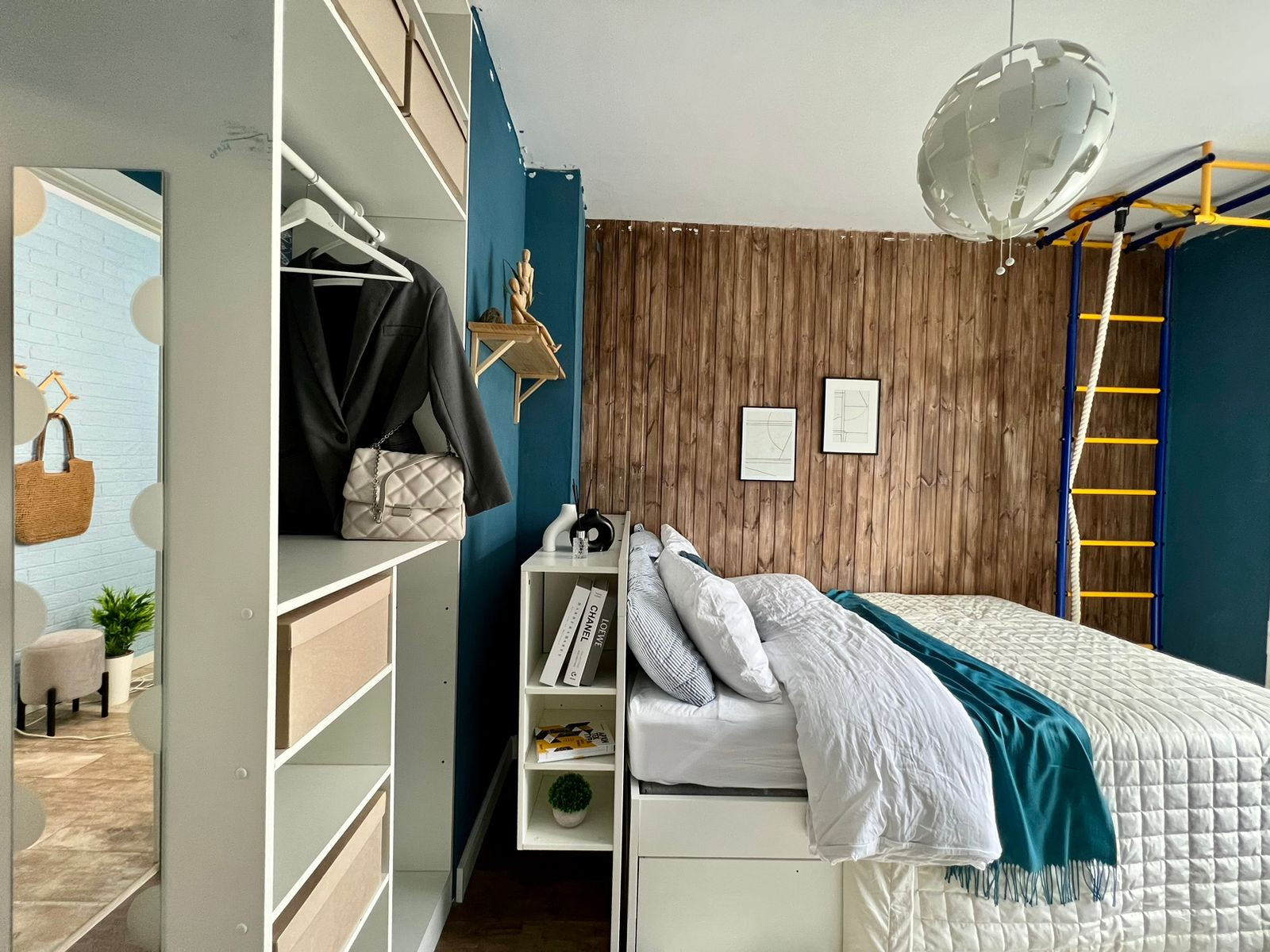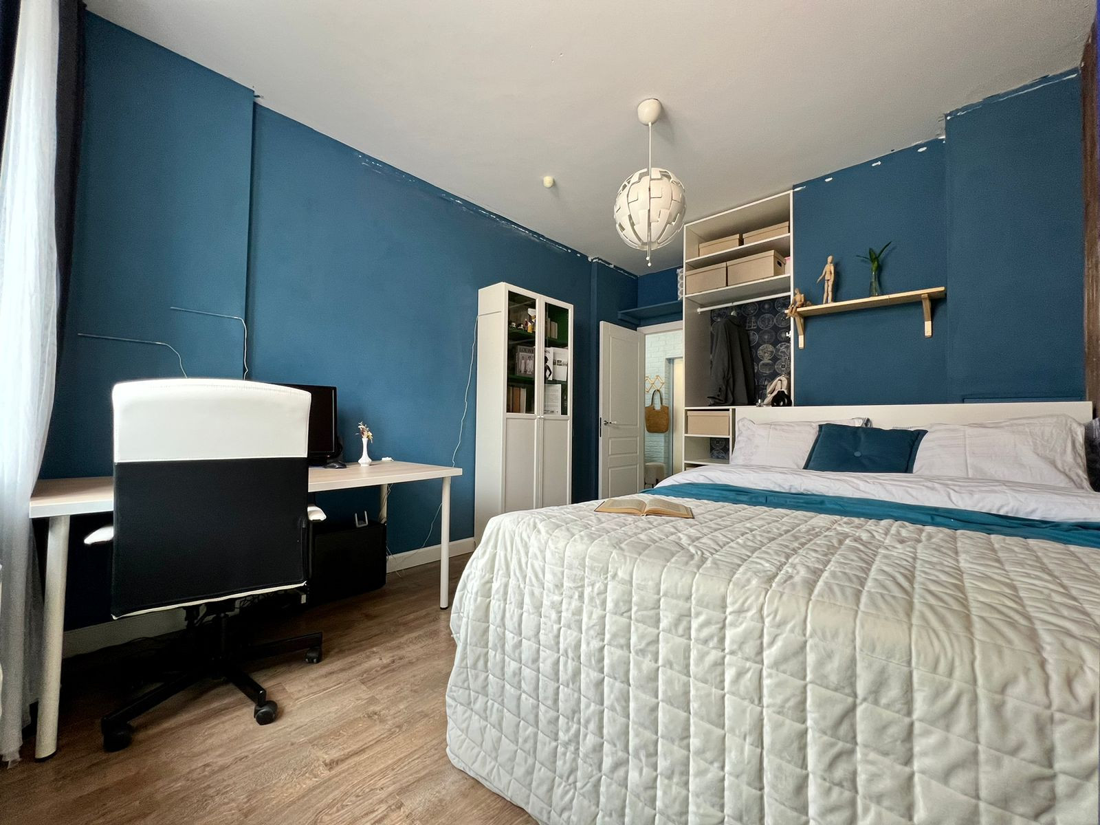 4. Совмещенный сан. Узел, где размещена стиральная машина и шкафчик и система хранения.