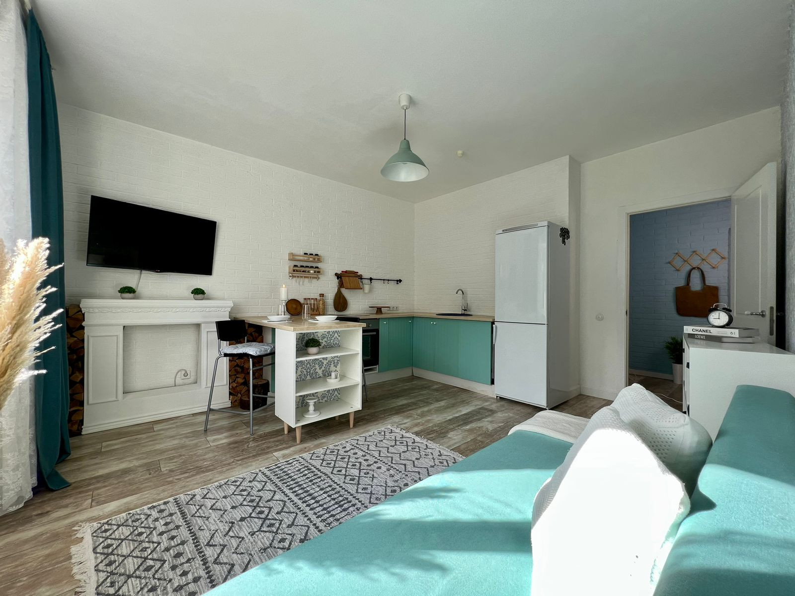 1. В квартире большая кухня -гостиная, высота потолков 2,75см.