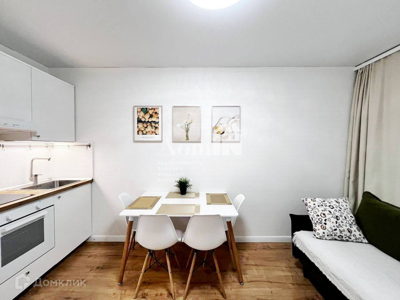 Просторная кухня-гостинная , комната, смежный санузел, хорошая гардеробная в коридоре.