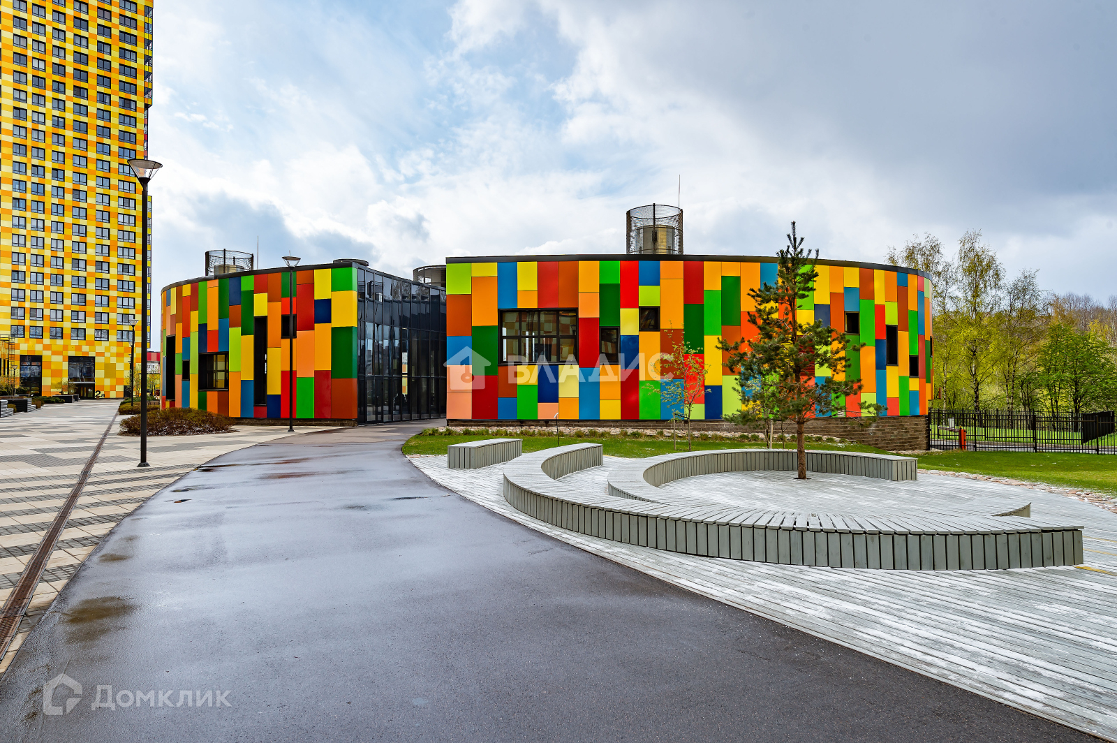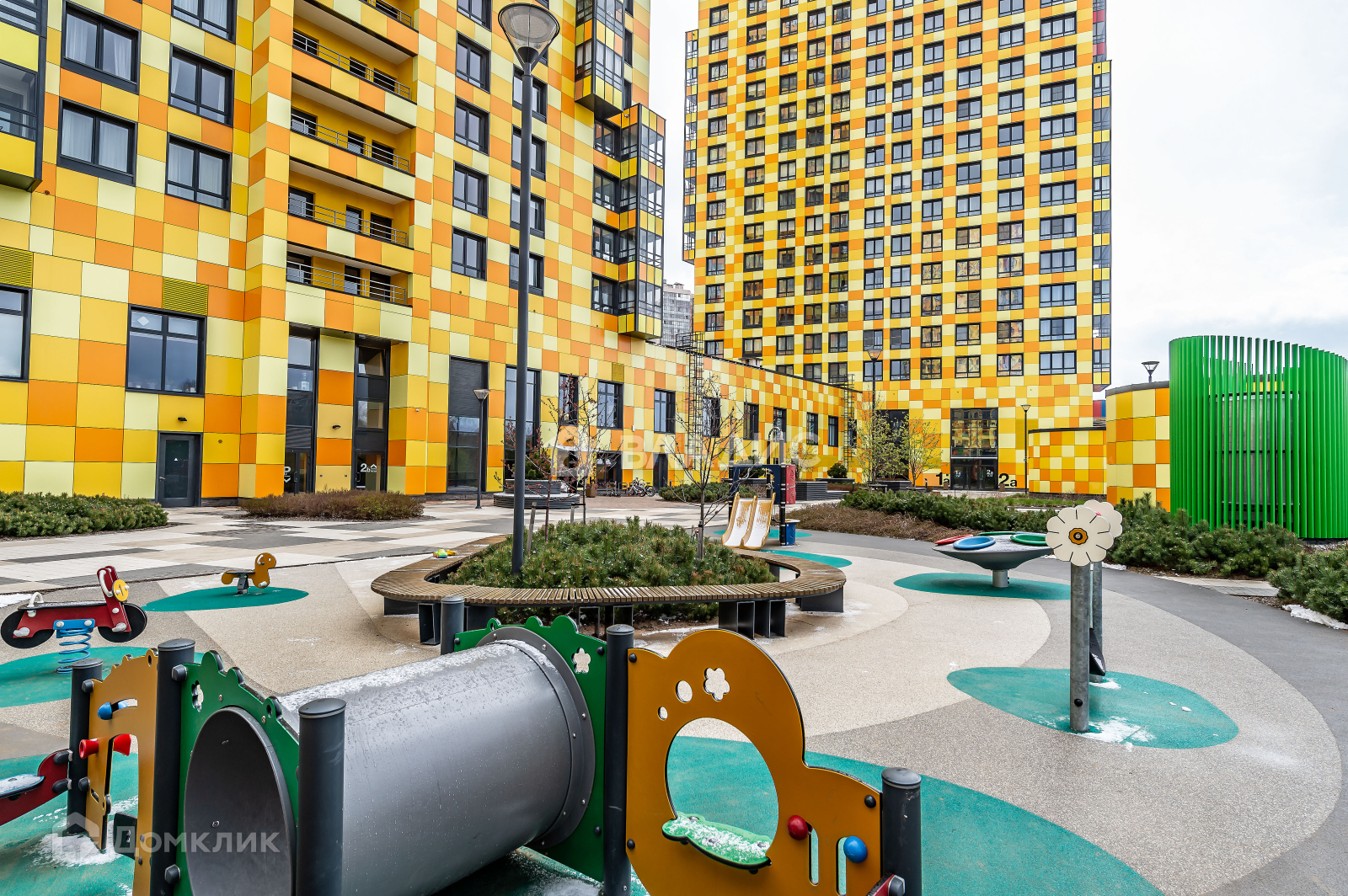 За счет двухэтажного стилобата с коммерческими помещениями внутри двора не ветрено и не шумно