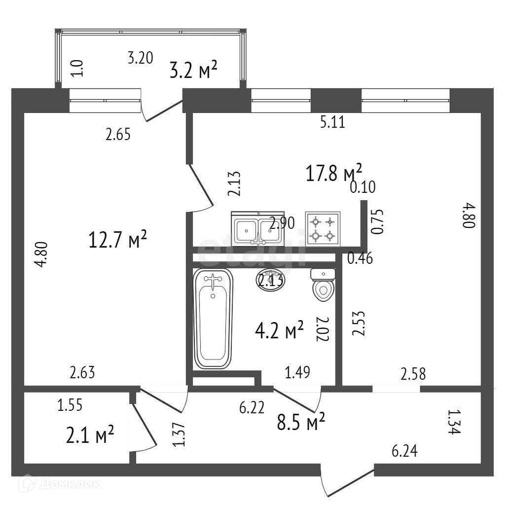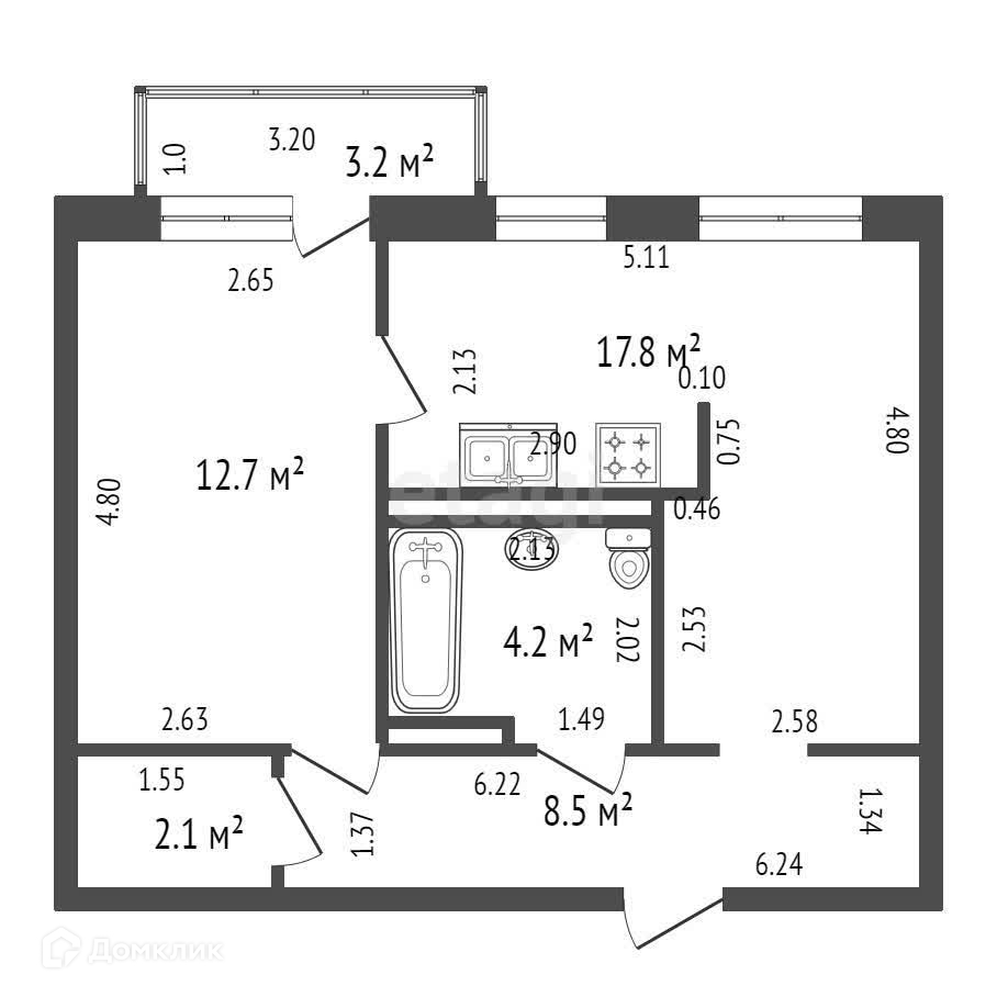 Балкон, лоджия 1 балкон