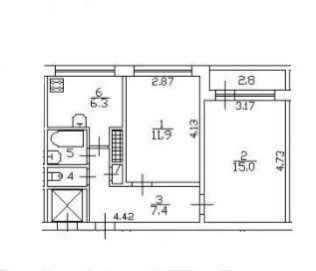 Площадь кухни 6.3 м2